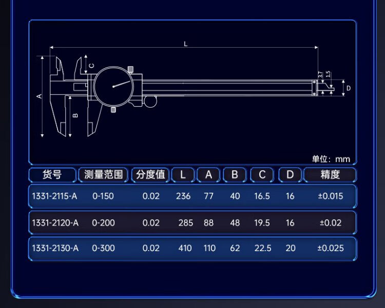 Dashike caliper with watch industrial grade high-precision stainless steel vernier caliper with watch caliper 0-150mm*0.01