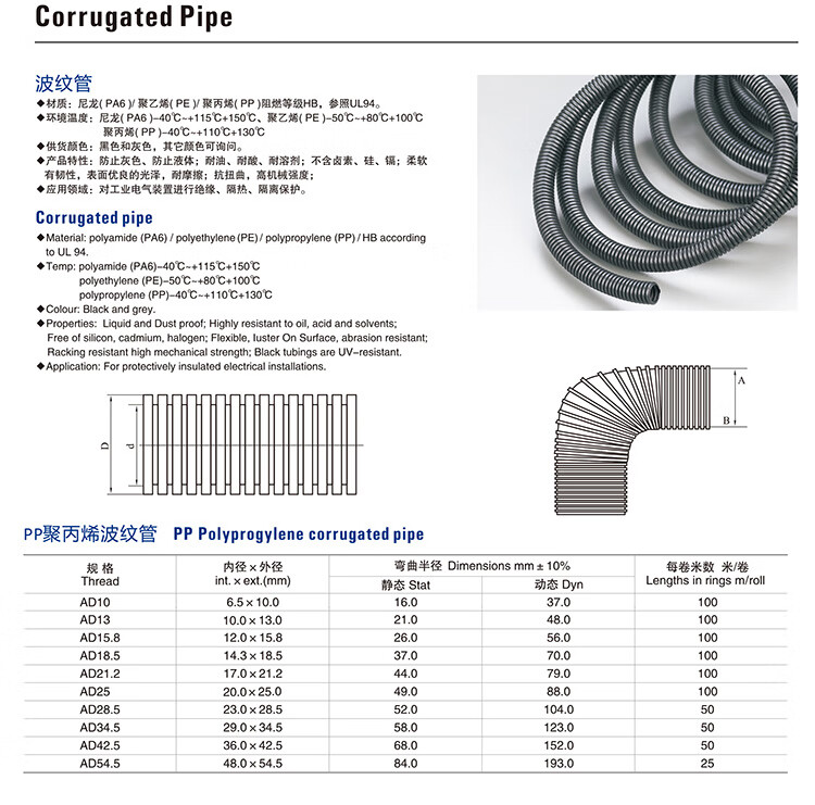 CHS Changhong Plastic PP corrugated pipe wire hose threading pipe AD21.2 PP 100 meters per roll
