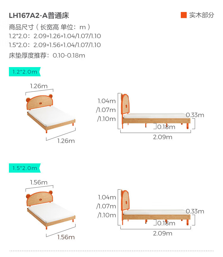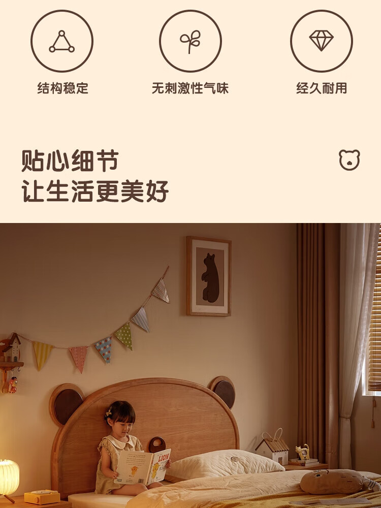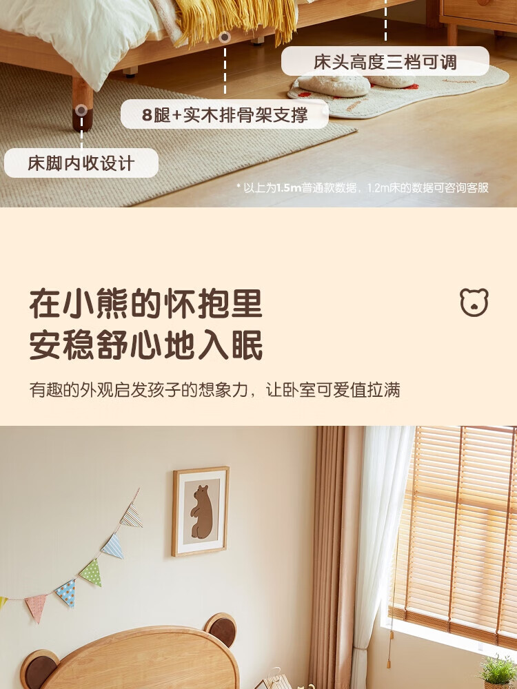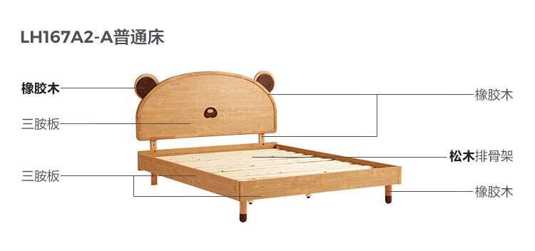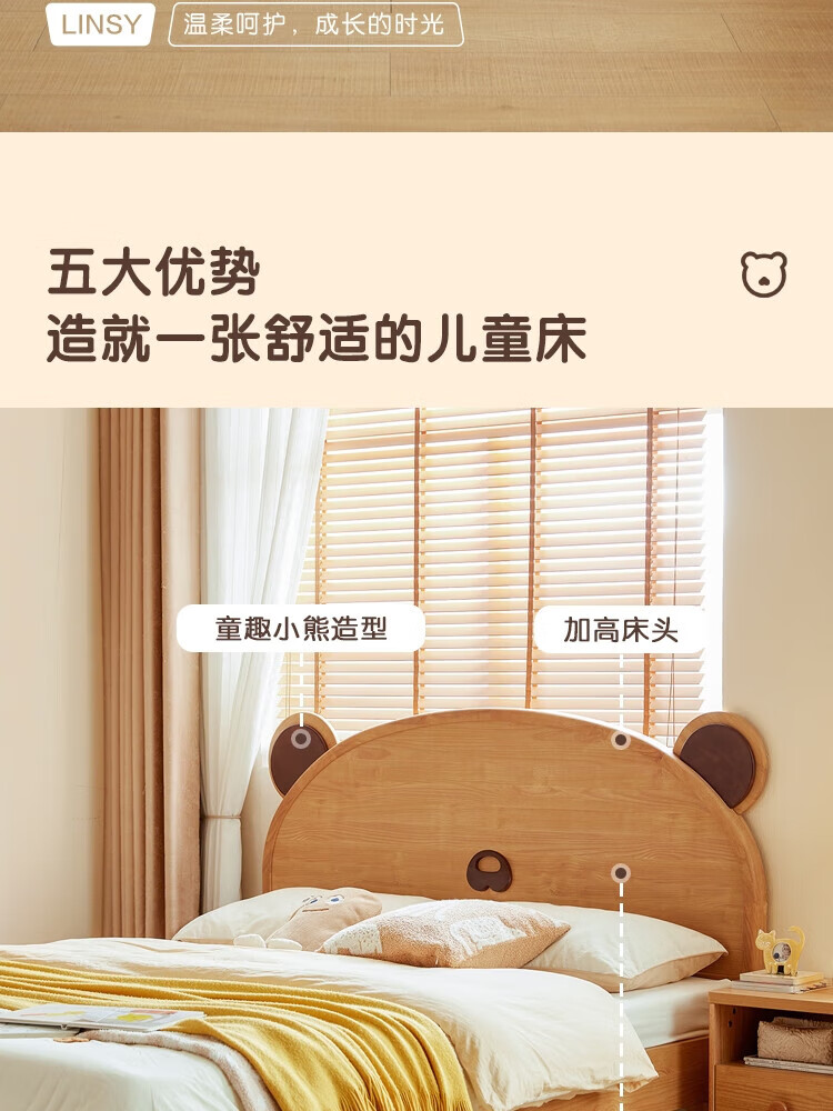 Lin's home bedroom cartoon bear bed 1.5m single children's bed girl boy LH bed plus mattress 1.5M