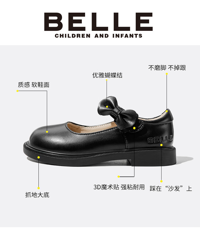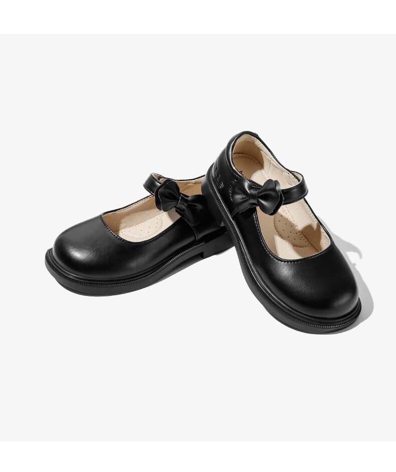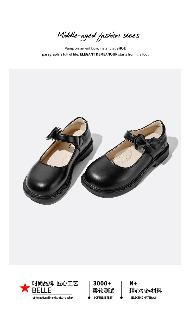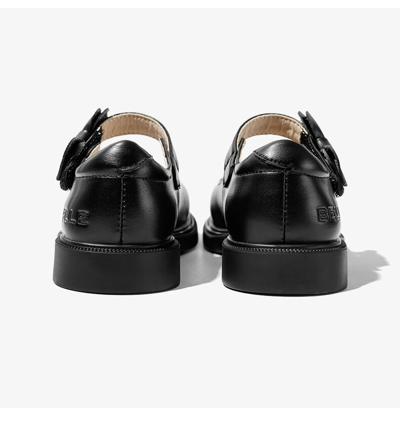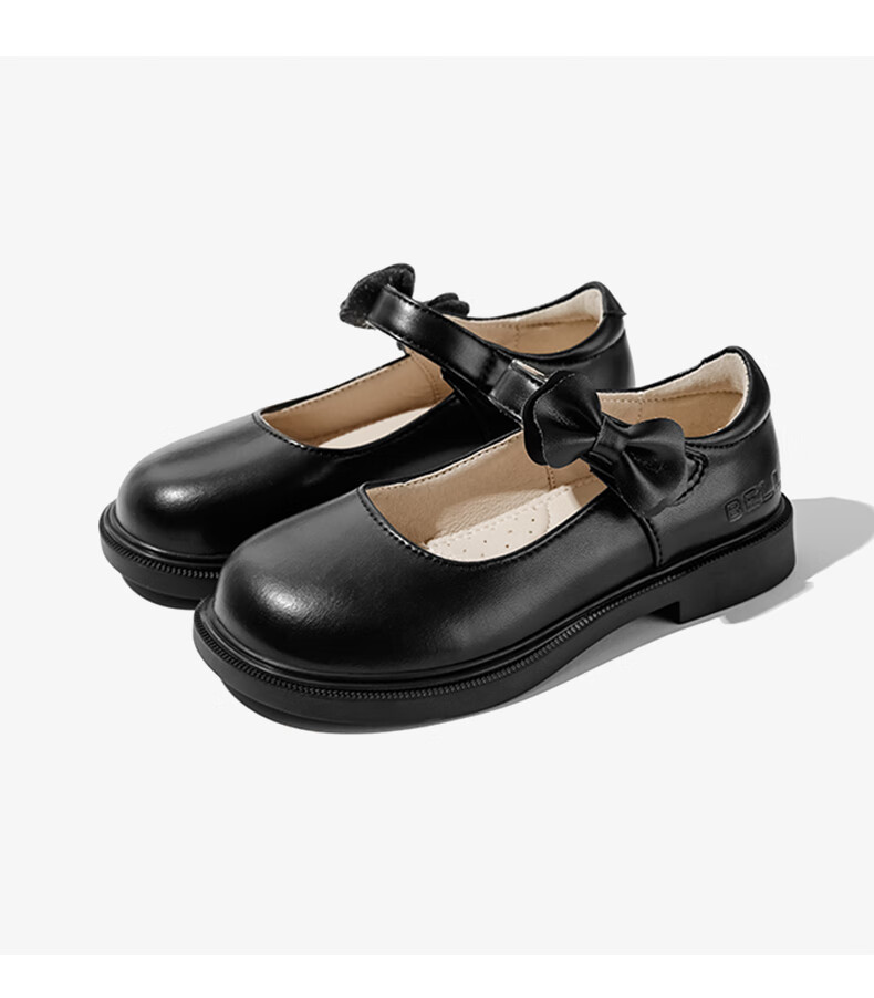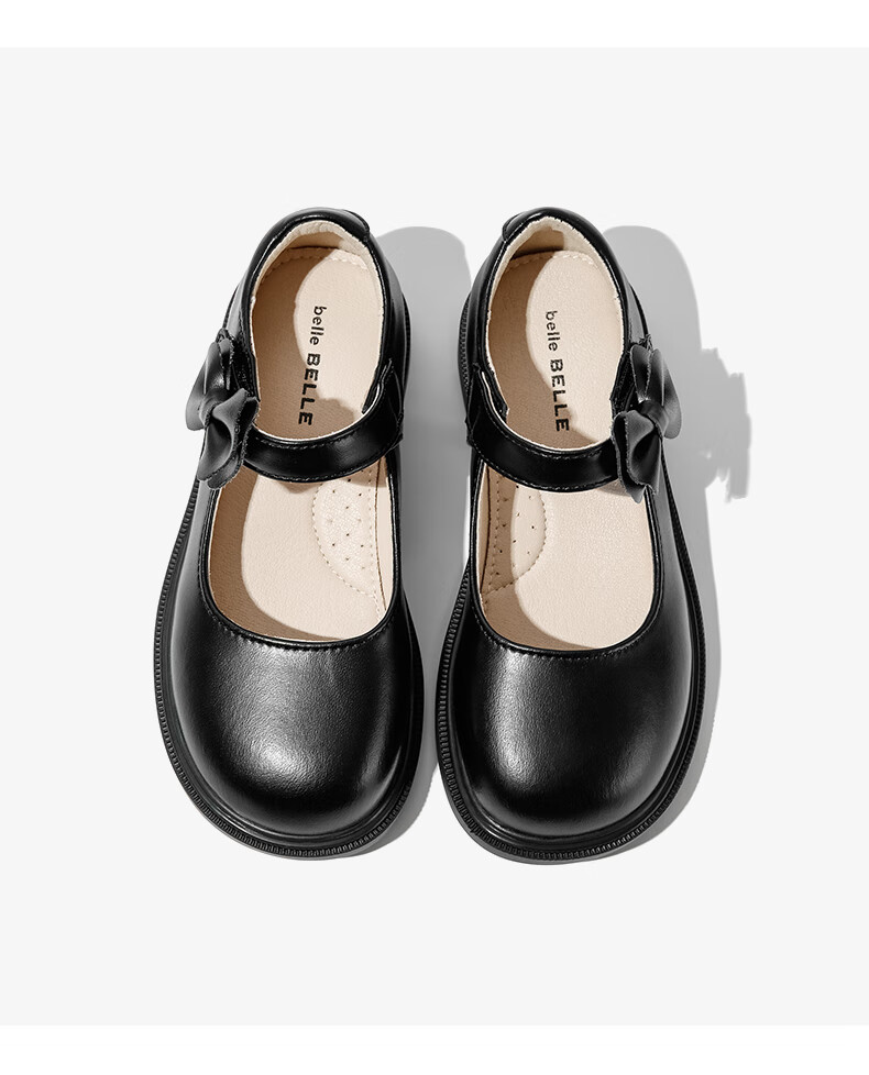 Belle children's shoes 25 years spring and autumn children's leather shoes back to school student shoes girls black leather shoes single shoes black size 31