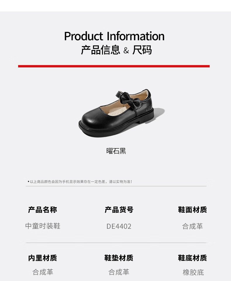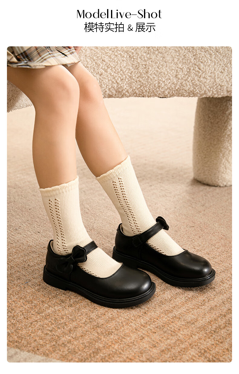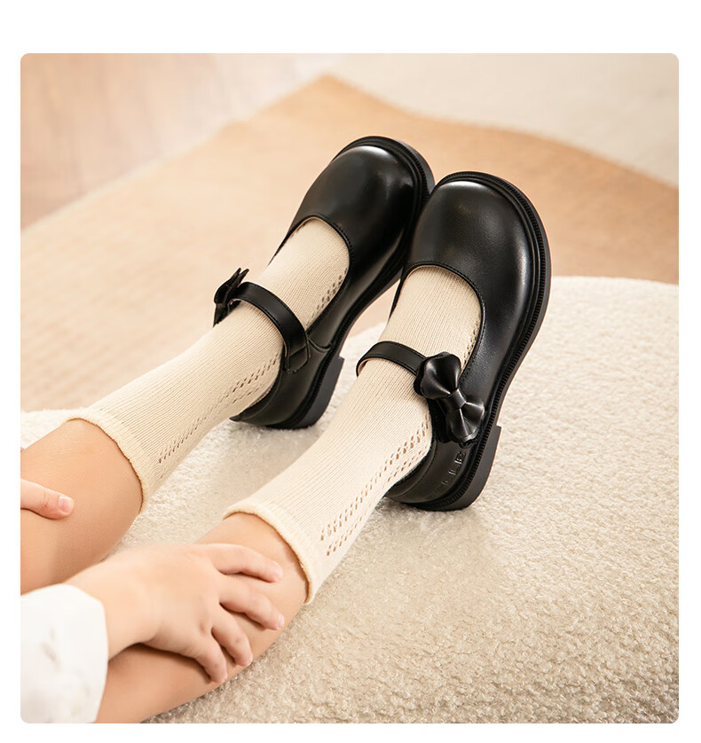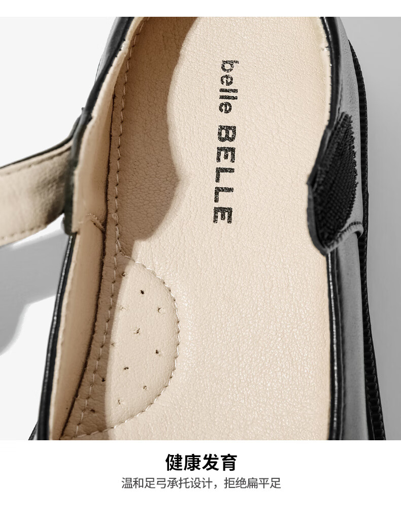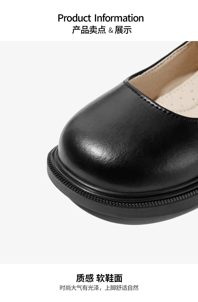 Belle children's shoes 25 years spring and autumn children's leather shoes back to school student shoes girls black leather shoes single shoes black size 31