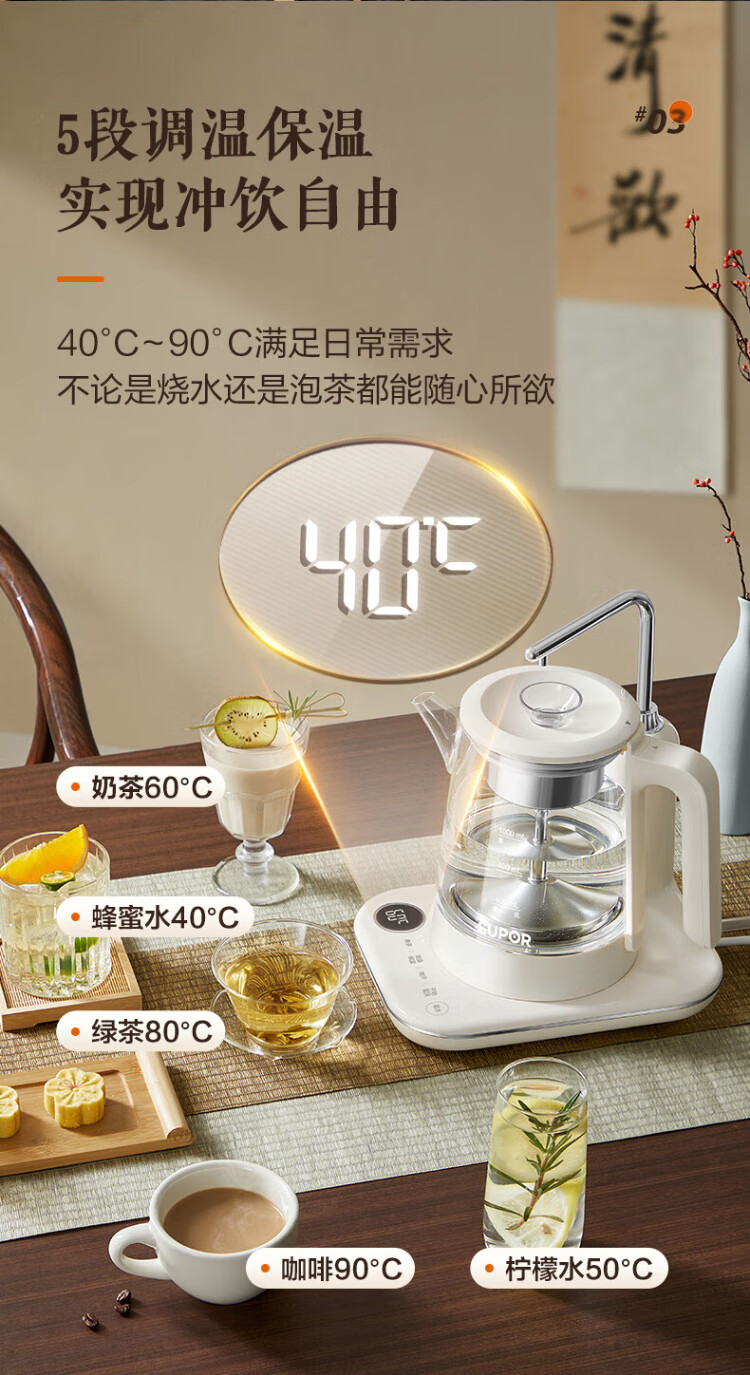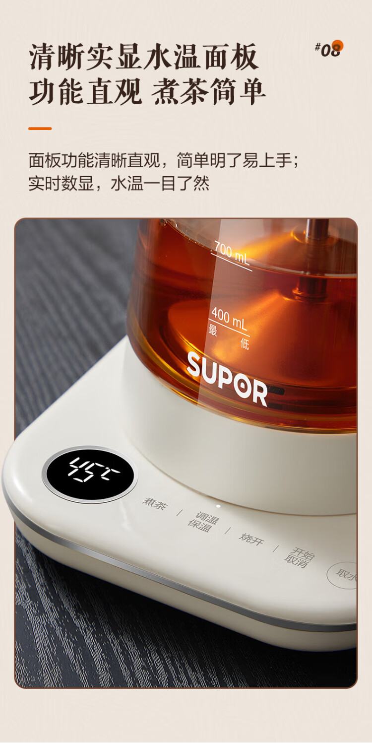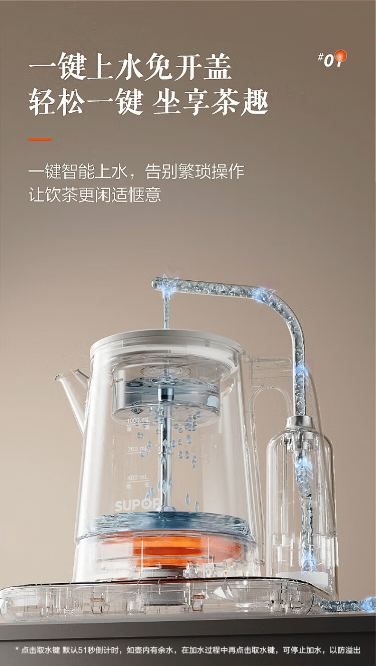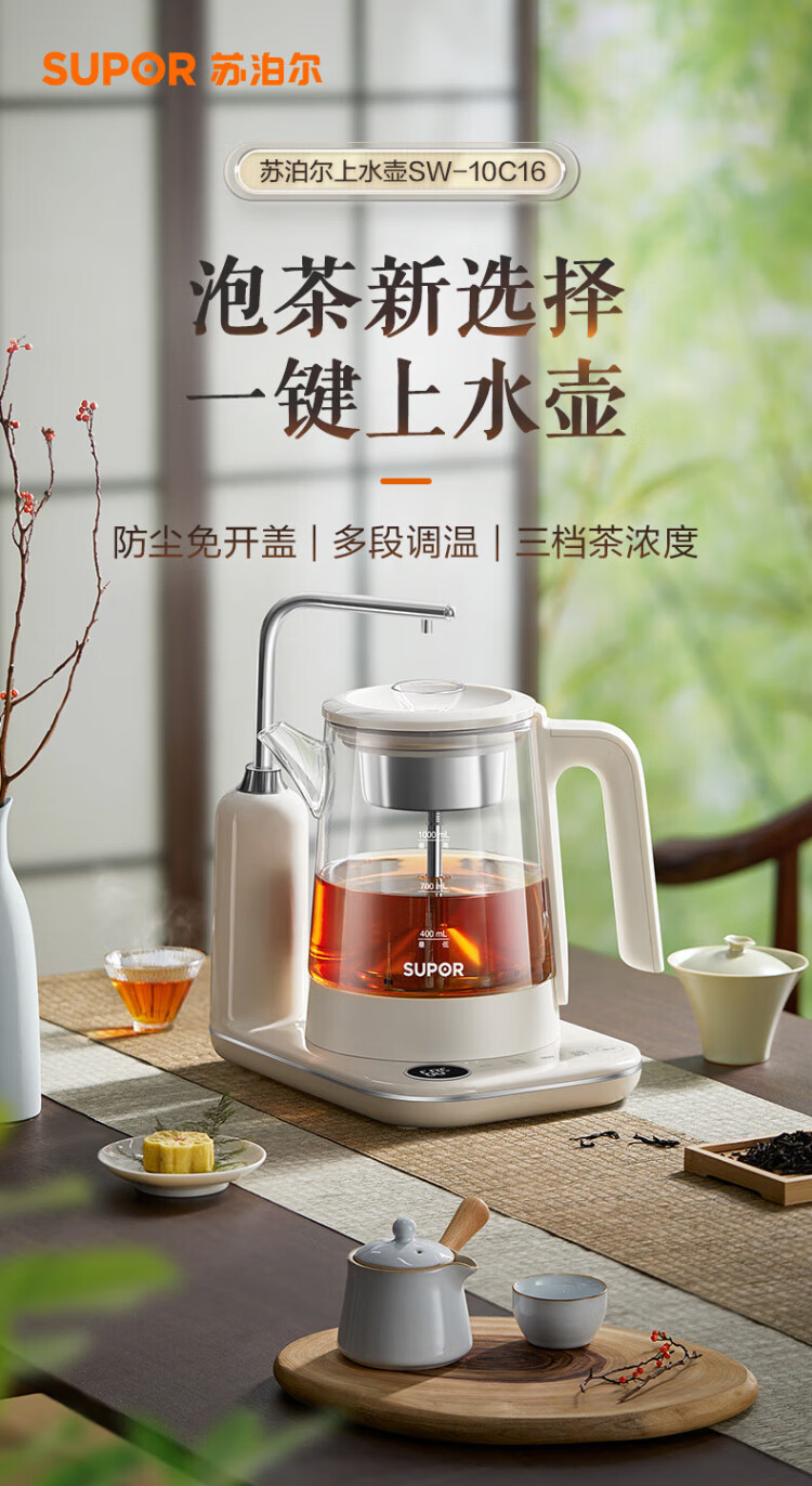 SUPOR health kettle automatic kettle tea boiler steam spray tea kettle top water insulated electric kettle 304 stainless steel water boiling tea set home office SW-10C16