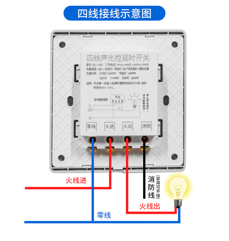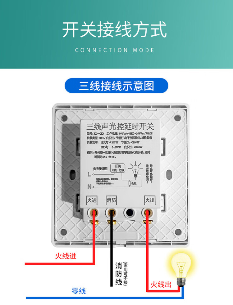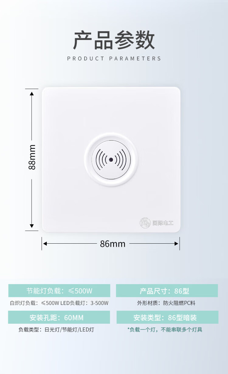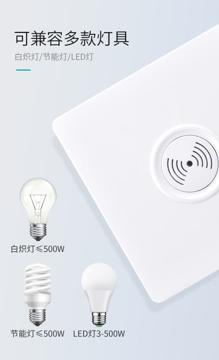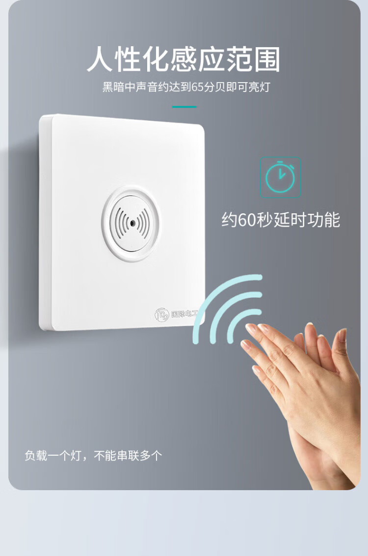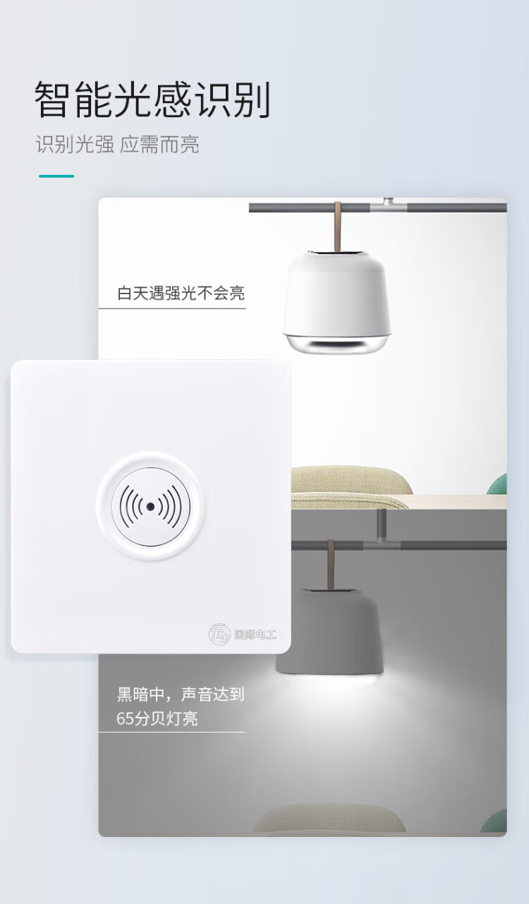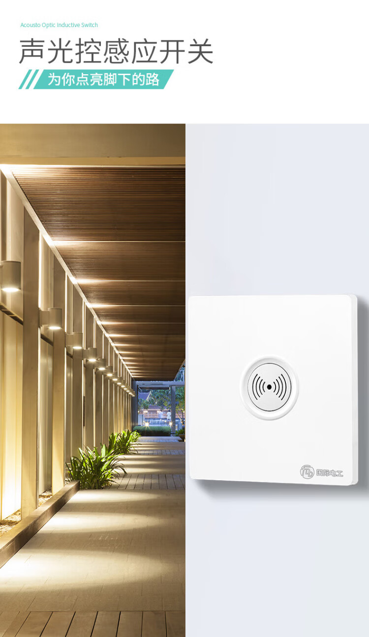 International Electrician (FDD) Type 86 switch panel concealed induction sound and light control switch 220v corridor sound and light control delay white-200W-second line sound and light control switch