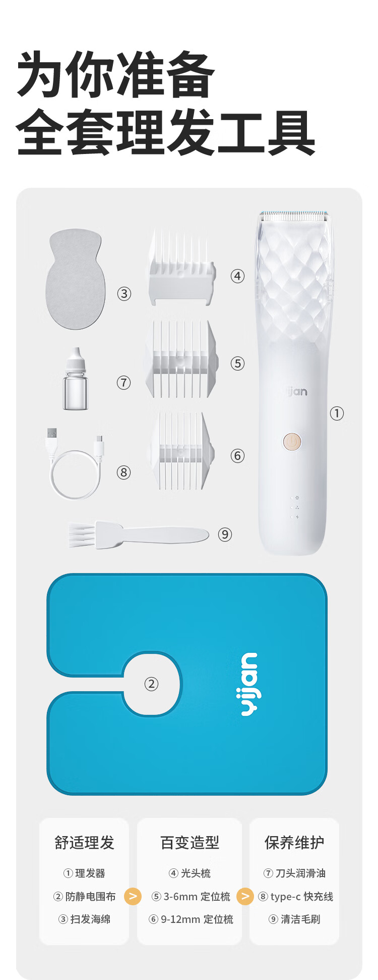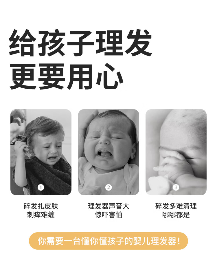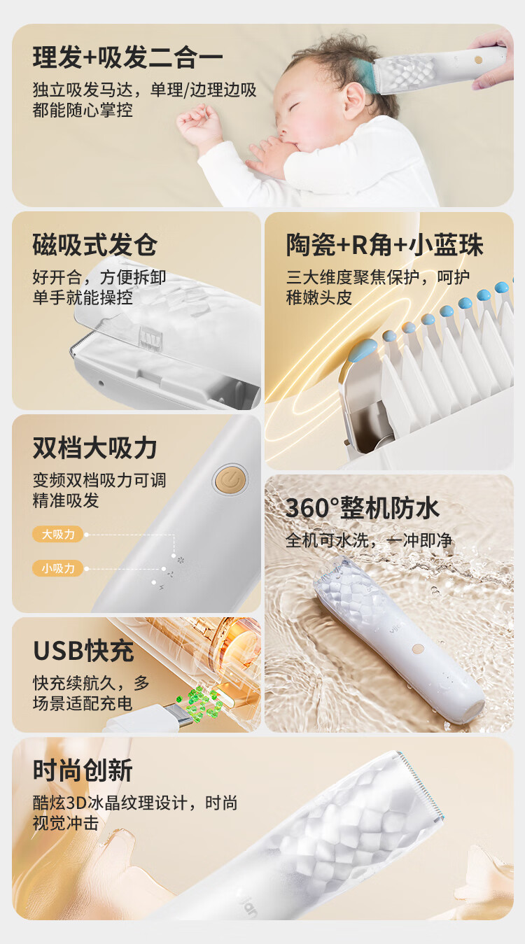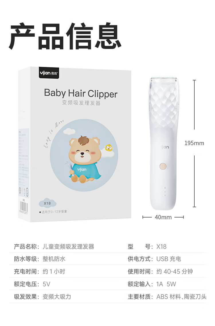 易简(yijan)婴儿理发器自动吸发儿童理发器宝宝剃头器新生儿剪发电推子X18白