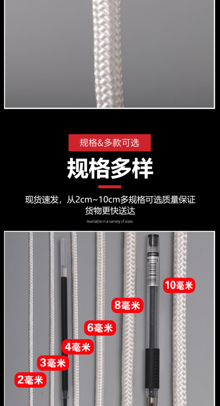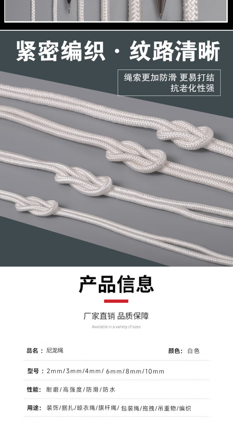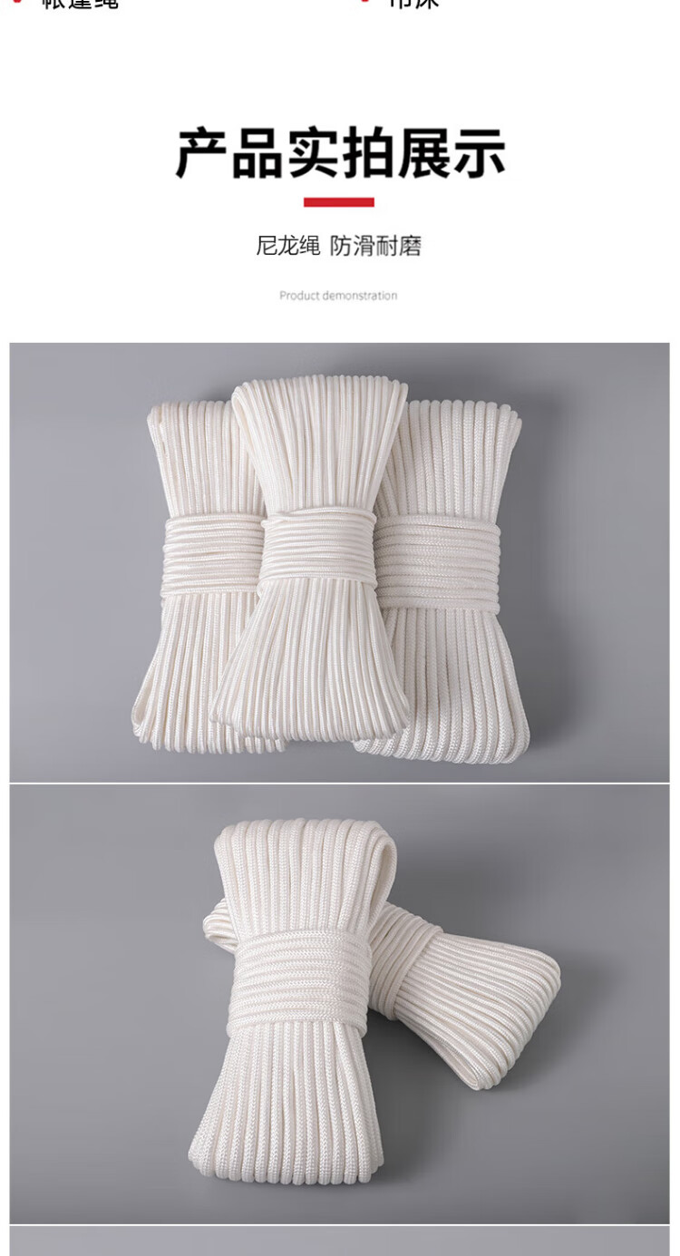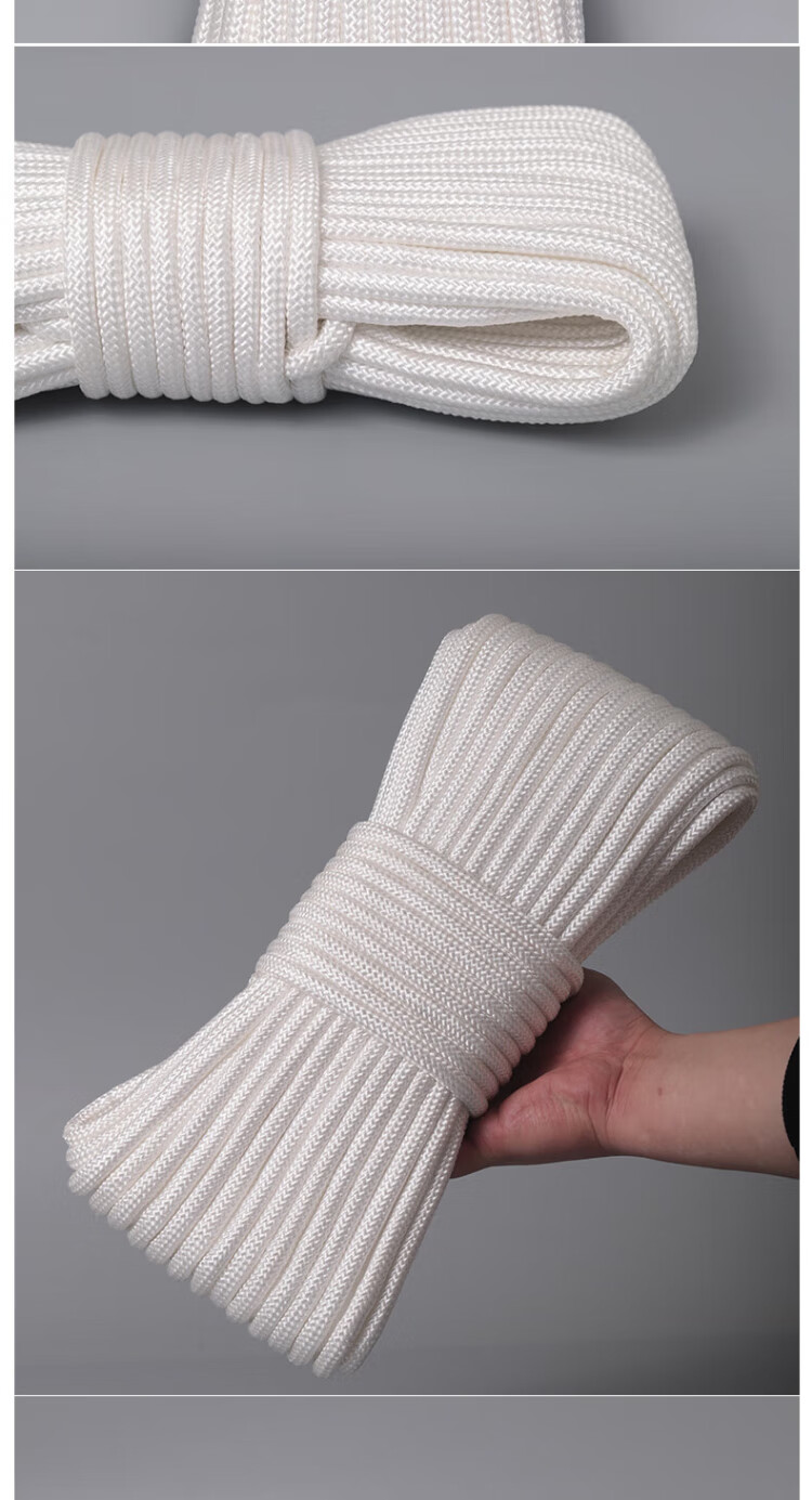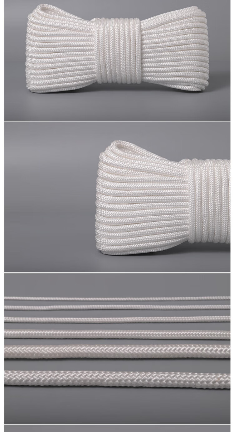 Cast-solid nylon rope core-covered wear-resistant and anti-aging binding rope nylon line greenhouse drawstring white braided rope 50 meters 6 mm