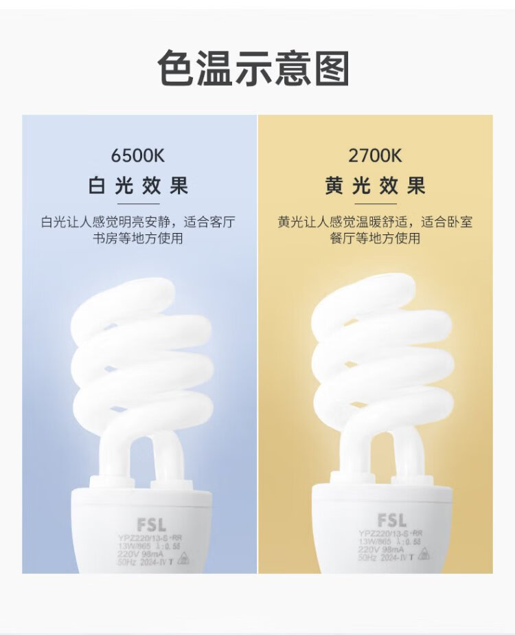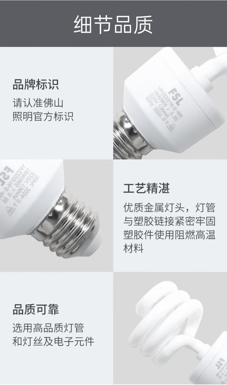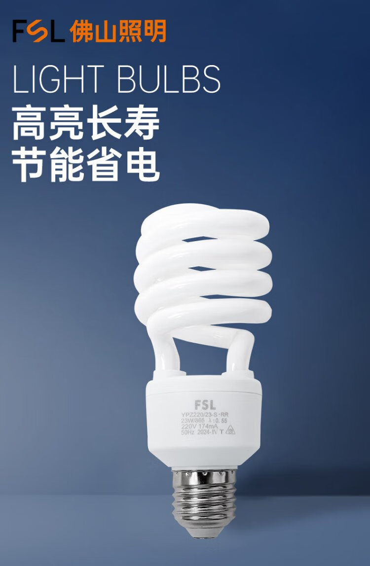 Foshan Lighting (FSL) T3 energy-saving lamp spiral factory workshop lighting three-primary color fluorescent lamp energy-saving lamp E27 screw socket 18W white light (6500K)