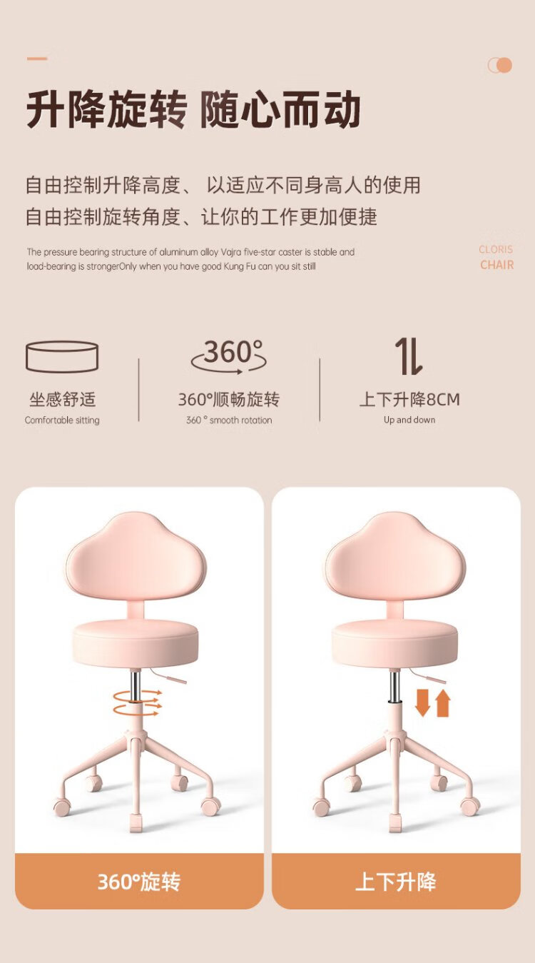 Karen Shi Lift Rotating Bar Chair Beauty Salon Manicure Pulley Round Stool Home Dressing Stool H2W