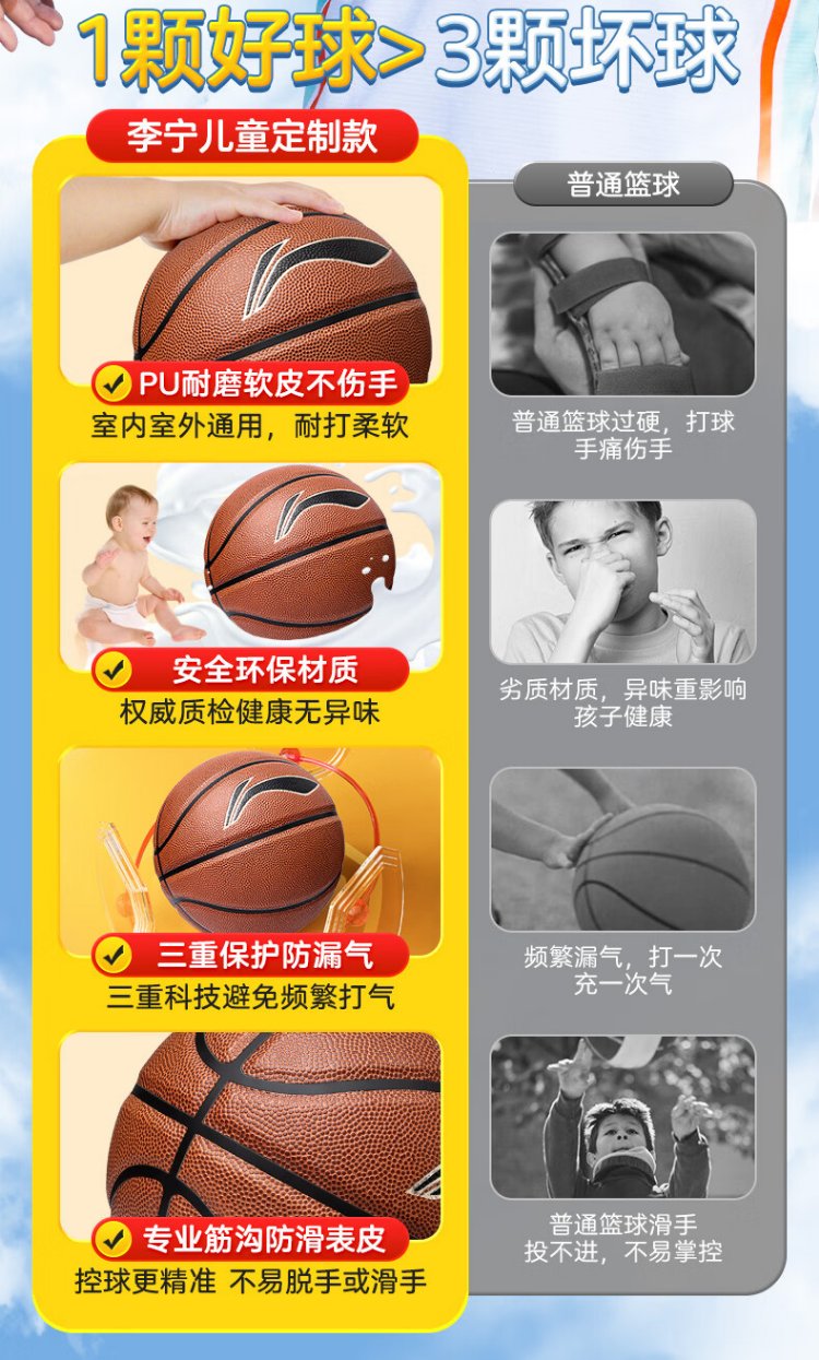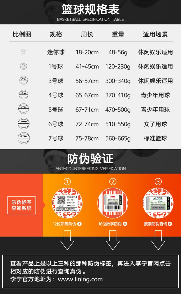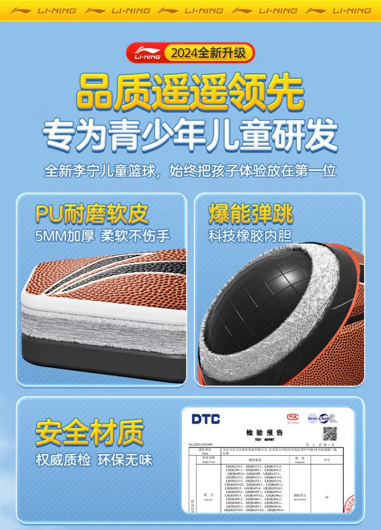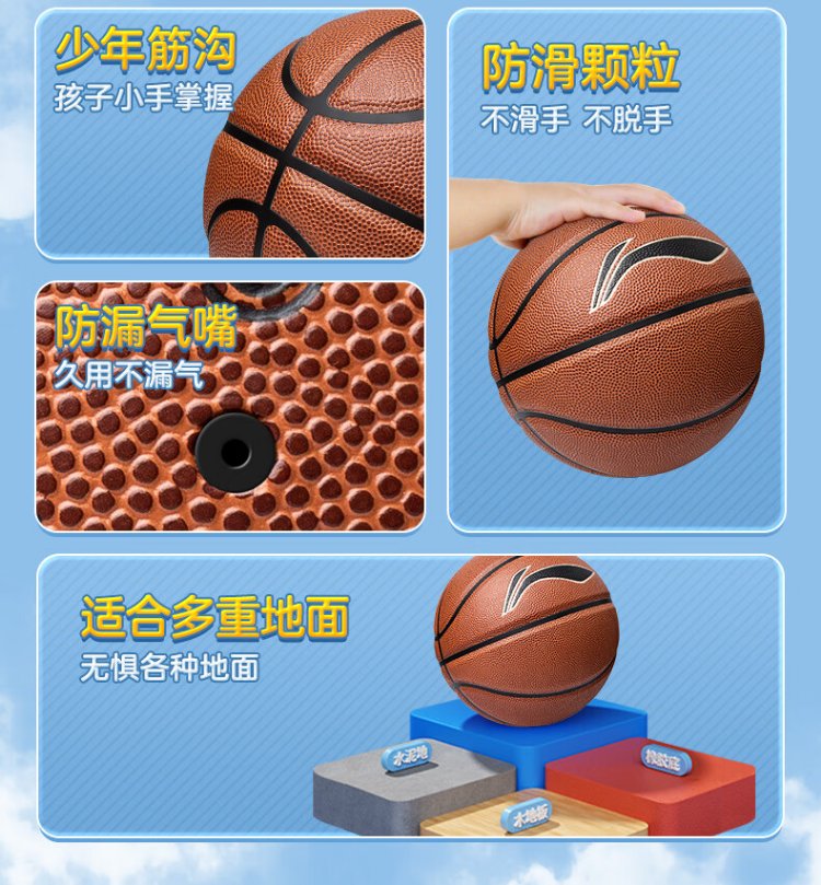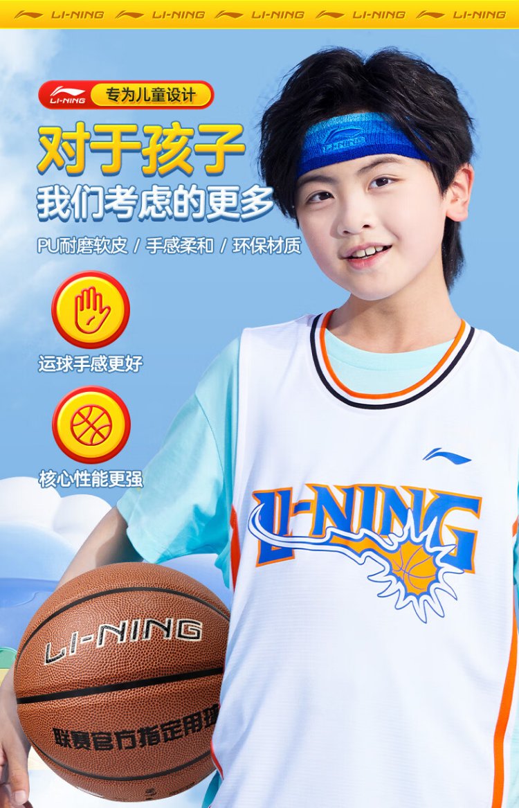 Li Ning (LI-NING) Basketball Children's No. 5 Game Indoor and Outdoor Wear-Resistant Concrete Floor Toddlers, Primary School Students and Teenagers Outdoor No. 5 PU