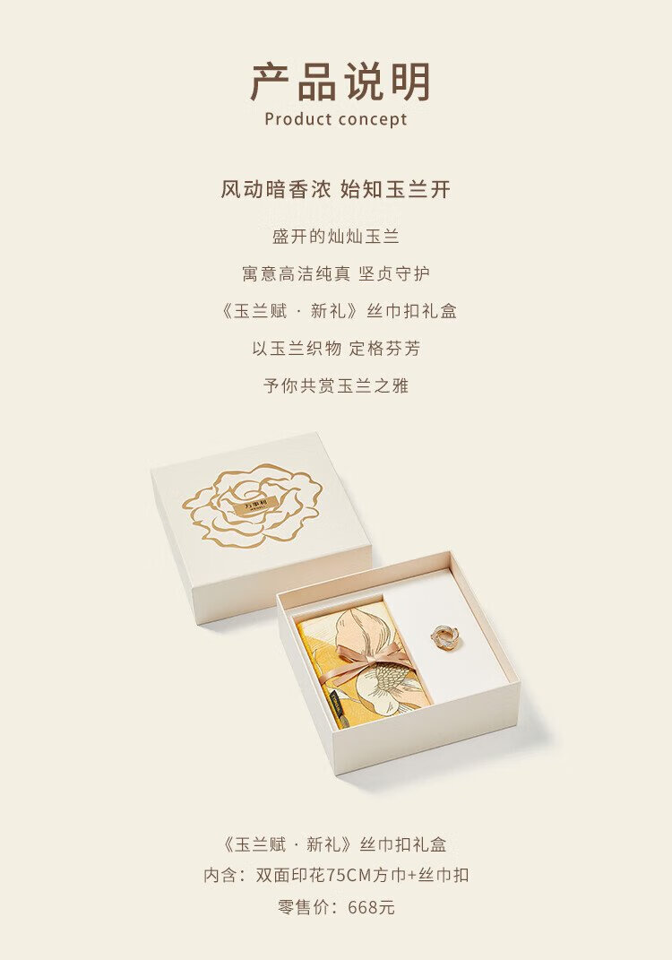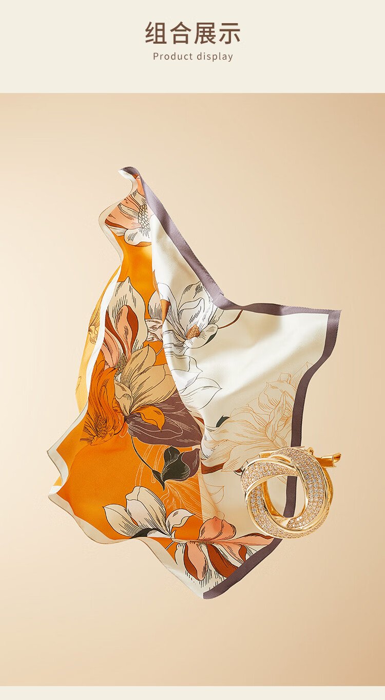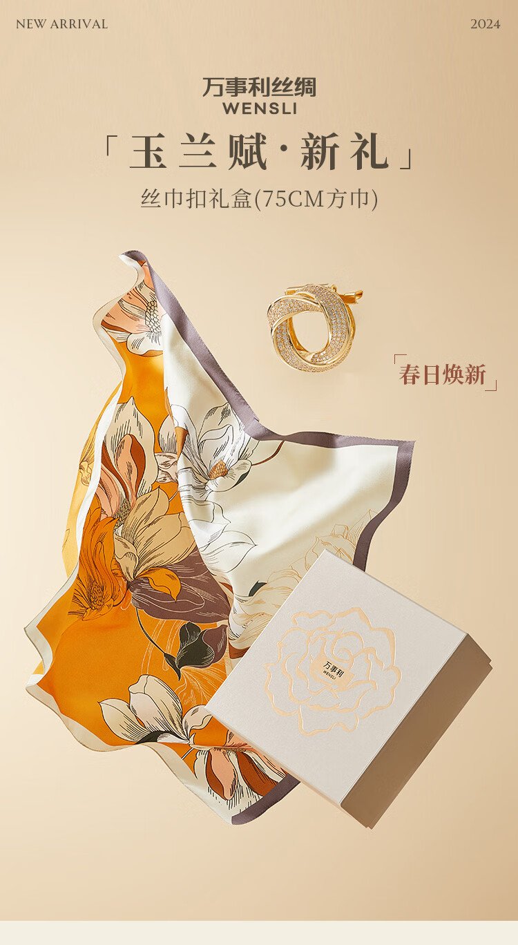 Wanshili silk scarf mulberry silk 75cm square scarf silk scarf buckle gift box for elder mother's birthday gift Magnolia Fu