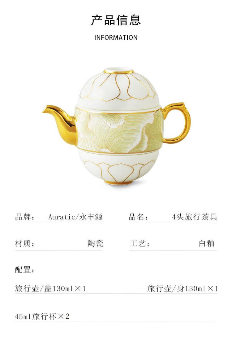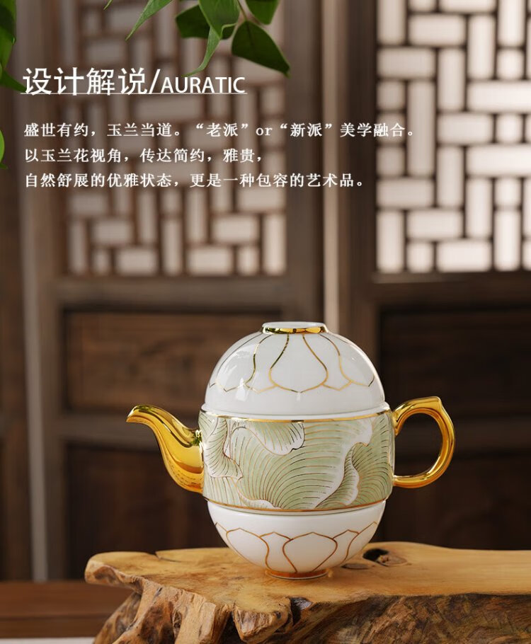 Auratic Chinese porcelain Yongfengyuan Magnolia 4-head ceramic Chinese travel tea set (2 persons) travel protective packaging
