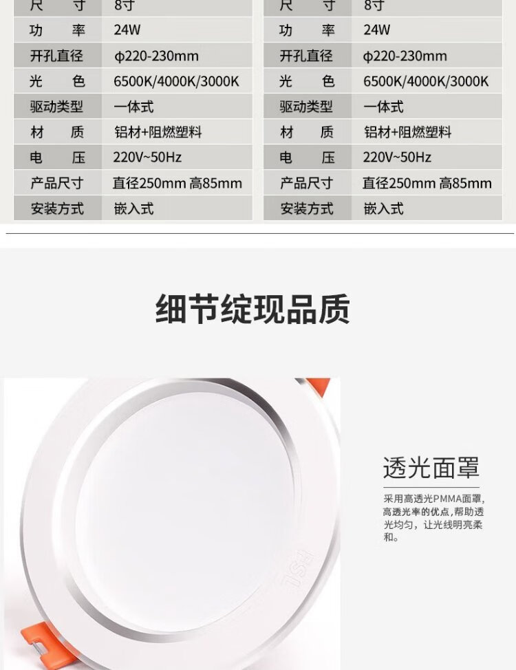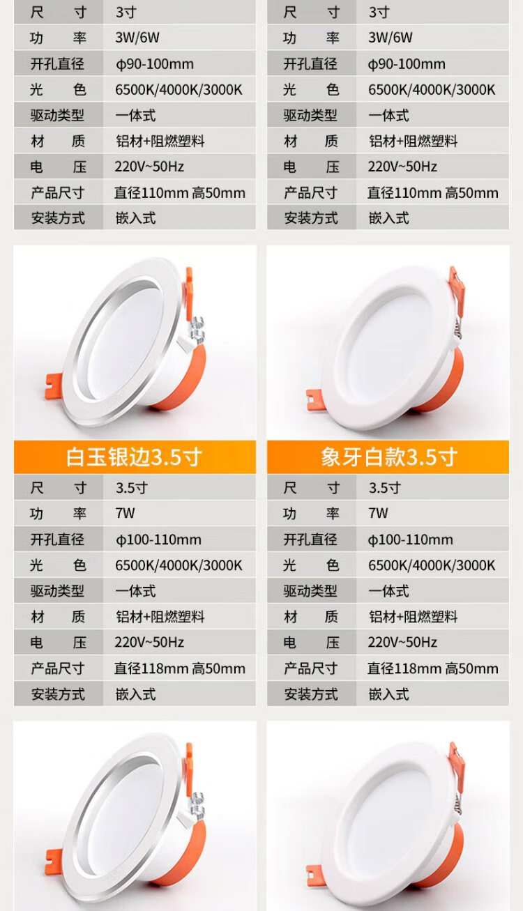 Foshan Lighting (FSL) downlight led ceiling spotlight aluminum embedded aisle ceiling hole light hole light simple light 6W warm white light 3 inch opening 90-100mm