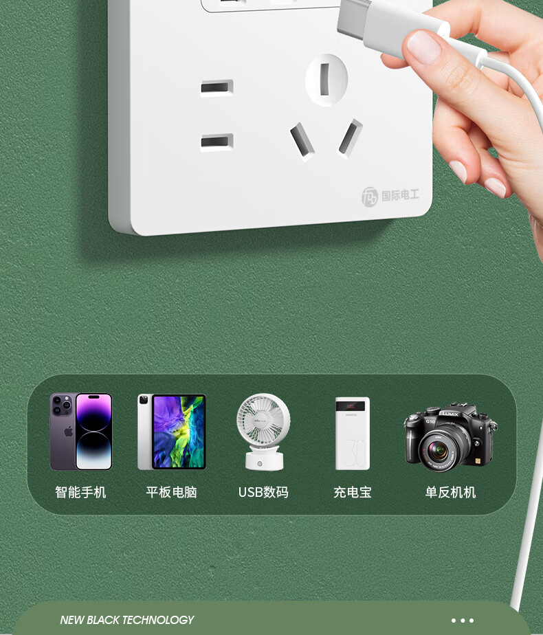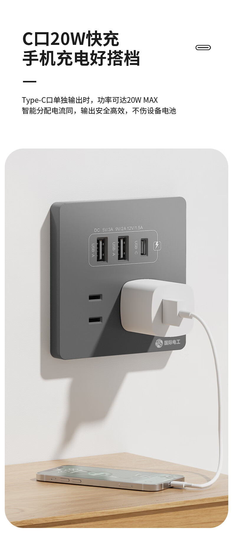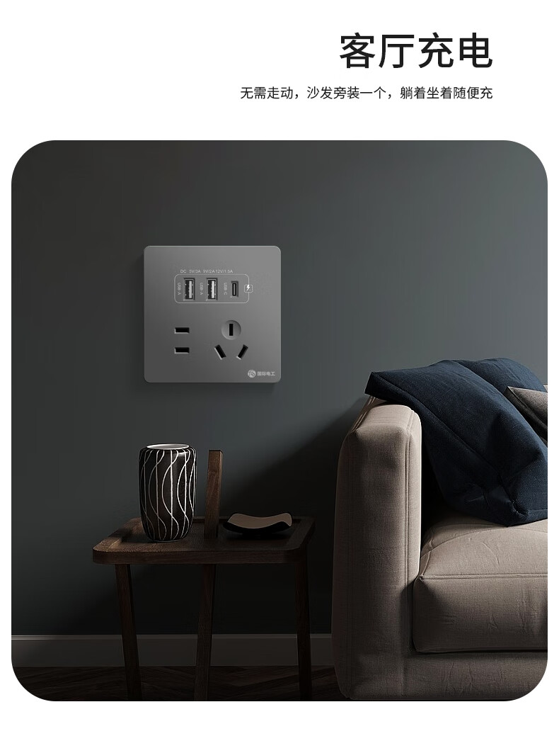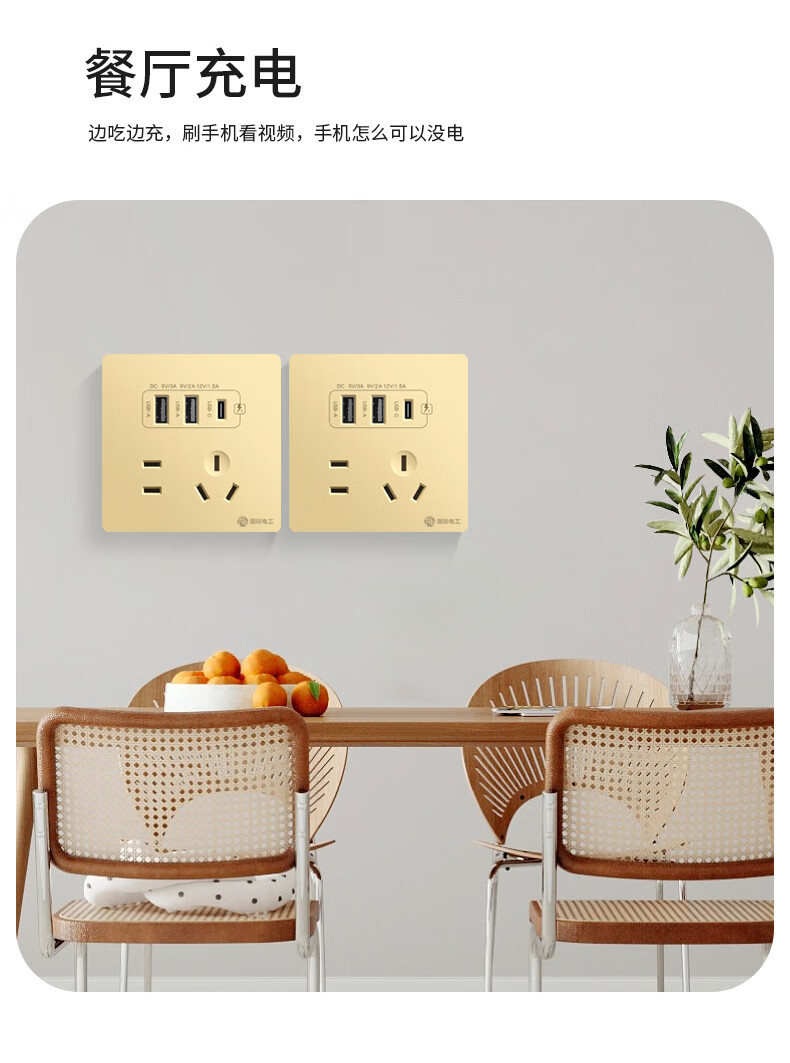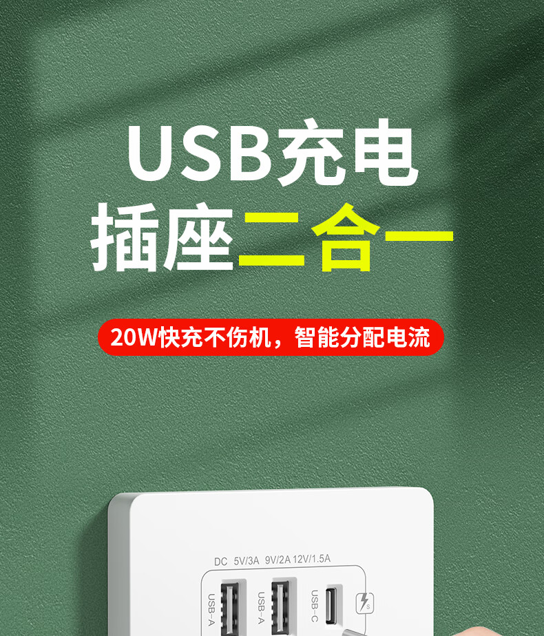 International electrician concealed type 86 20W fast charging USB socket switch panel wall mobile phone charging Type-c household five-hole five-hole 20W fast charging USB+typeC (white)