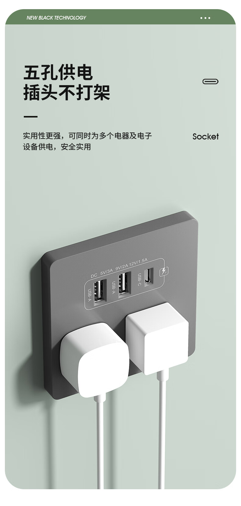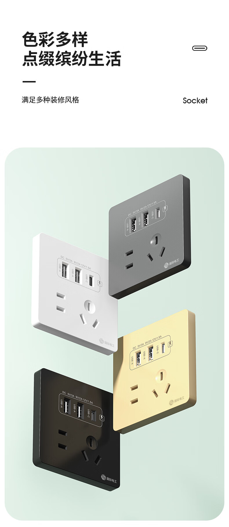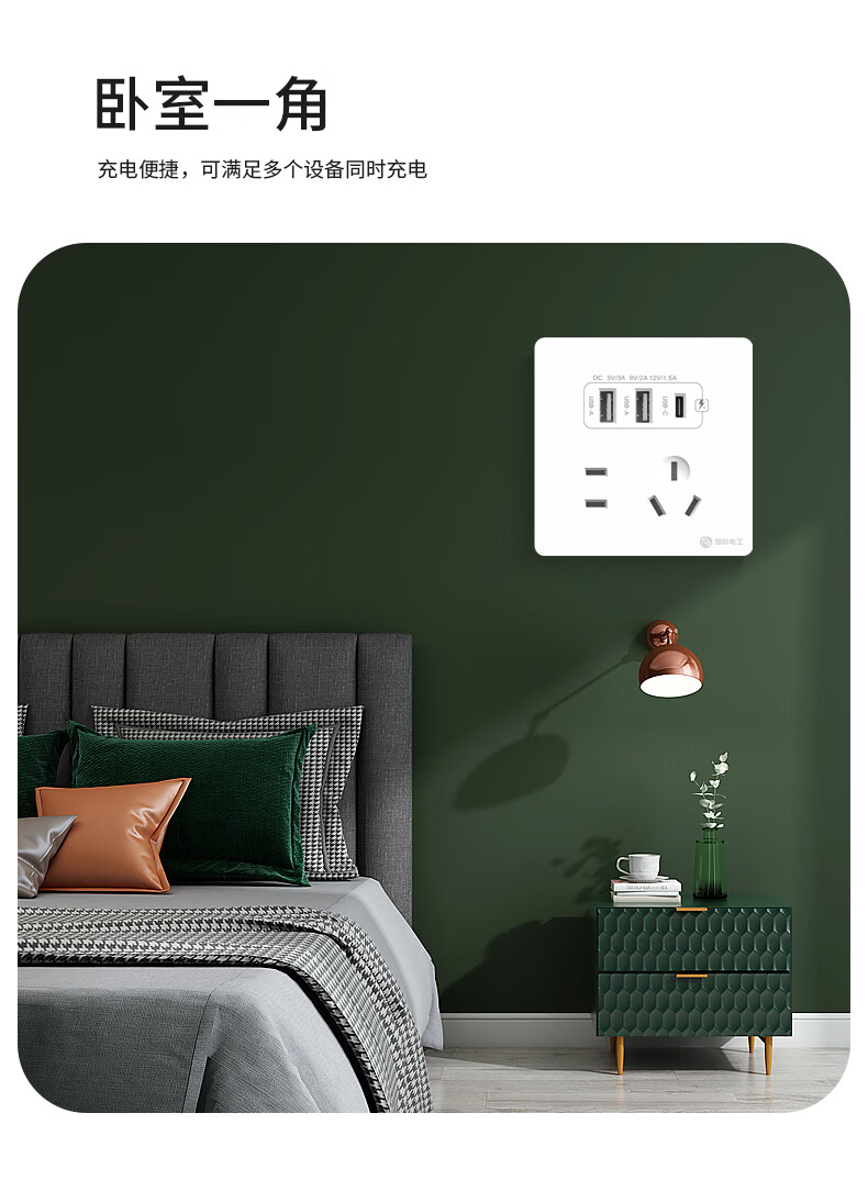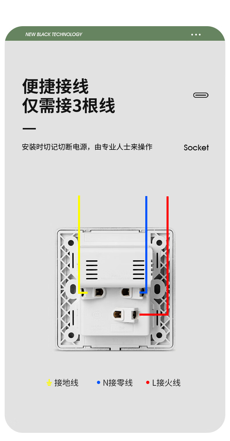 International electrician concealed type 86 20W fast charging USB socket switch panel wall mobile phone charging Type-c household five-hole five-hole 20W fast charging USB+typeC (white)