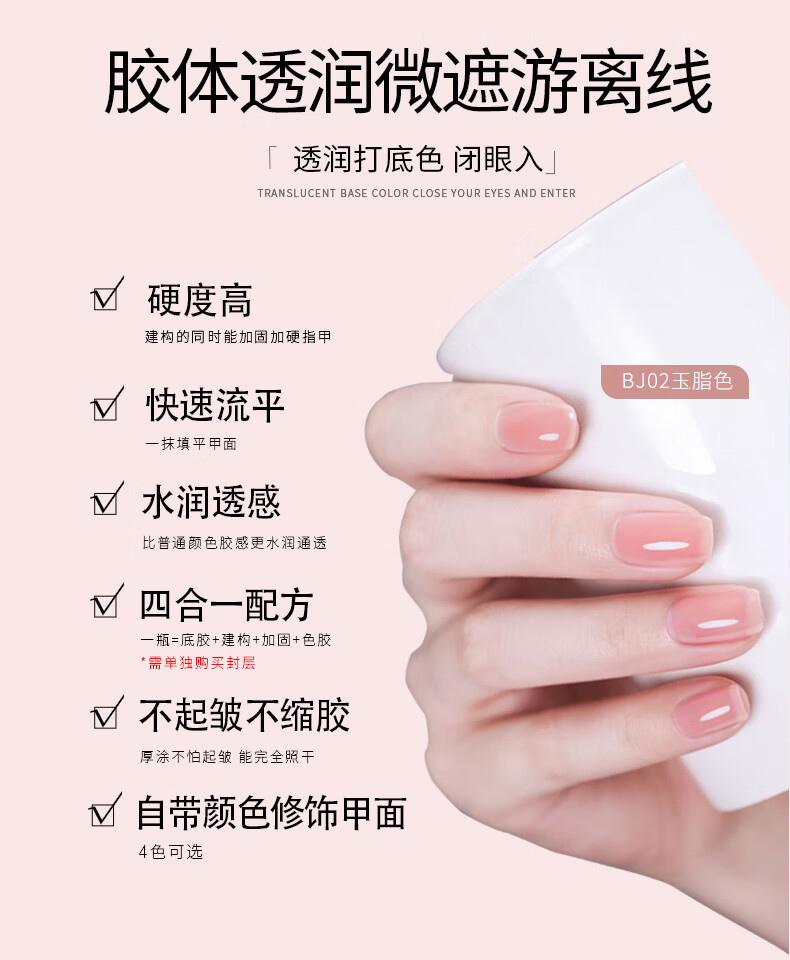 Miss Candy Nail Polish Gel Base 10ml Light Therapy Construction Gel Nude Color Nail Art Reinforcement Gel Four-in-One Skin Beauty Color BJ04