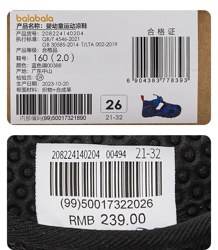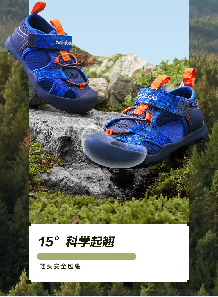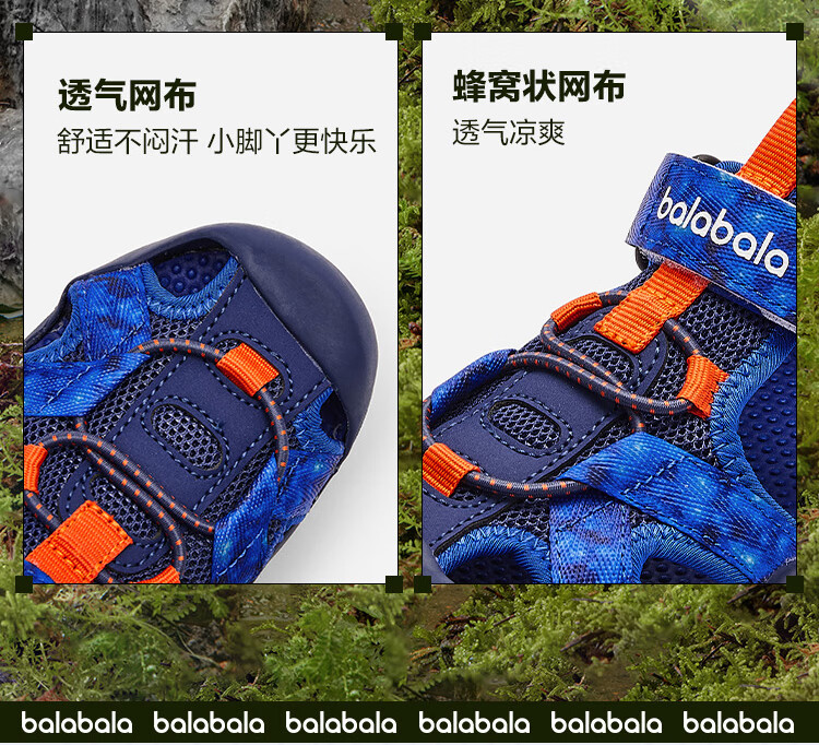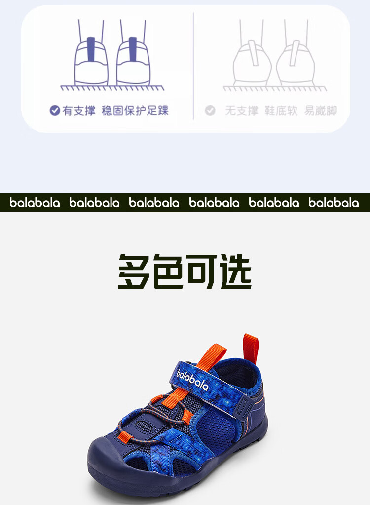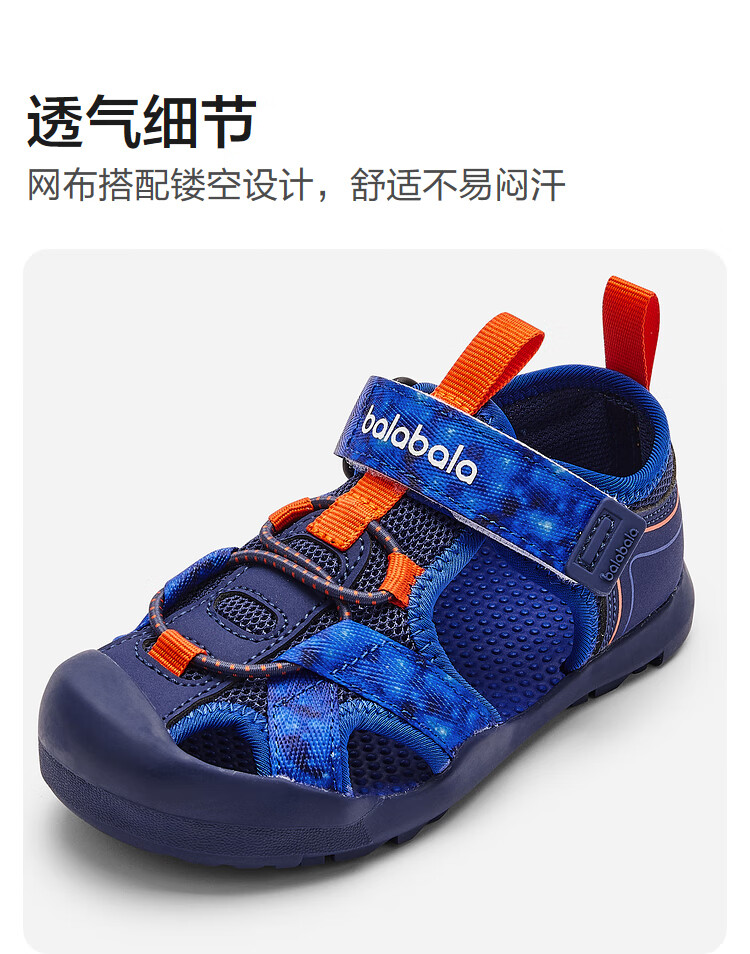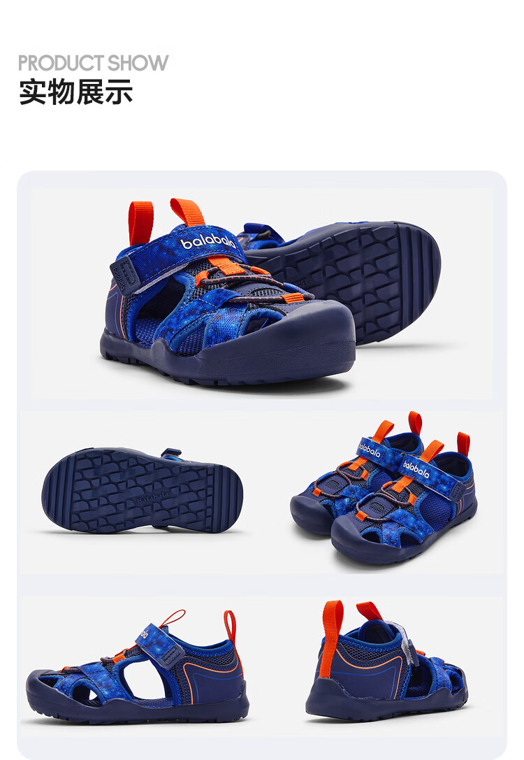 Balabala children's shoes children's sports sandals boys beach shoes 2024 summer toe shoes Velcro 208224140204