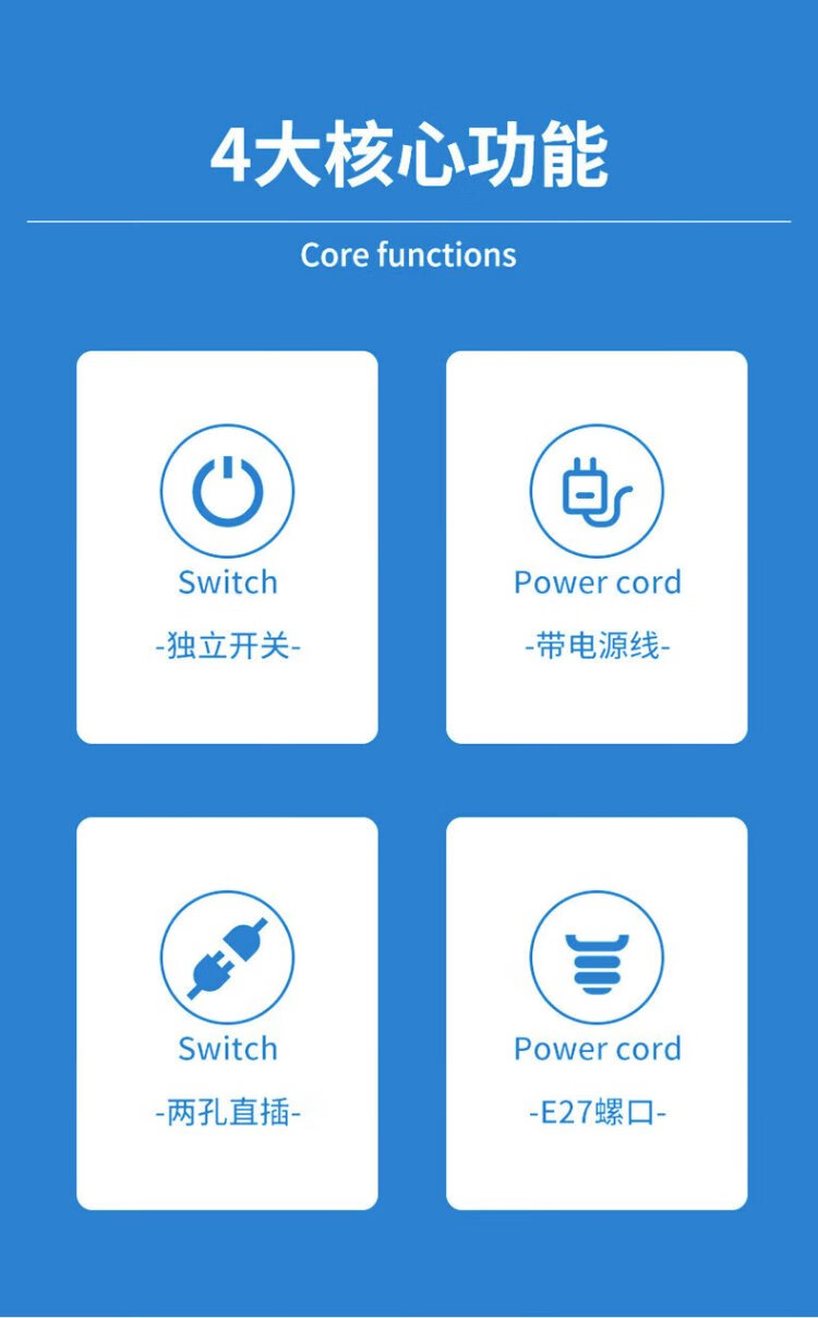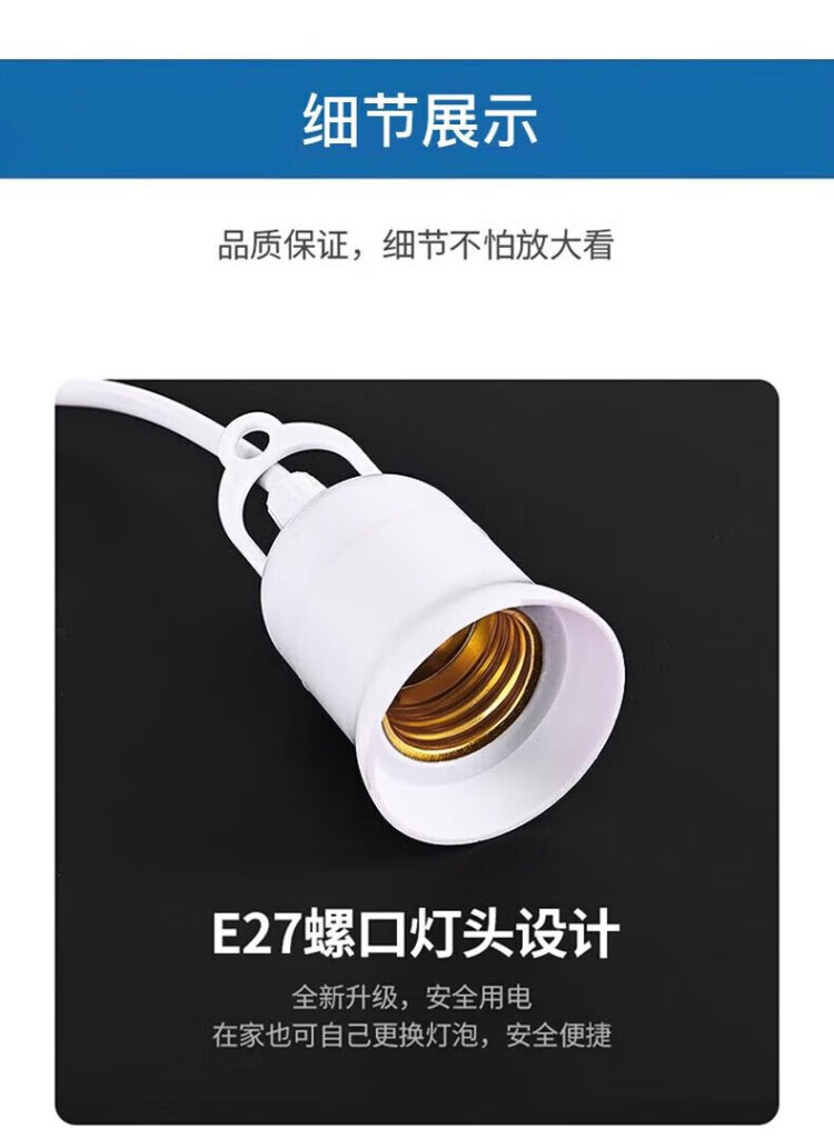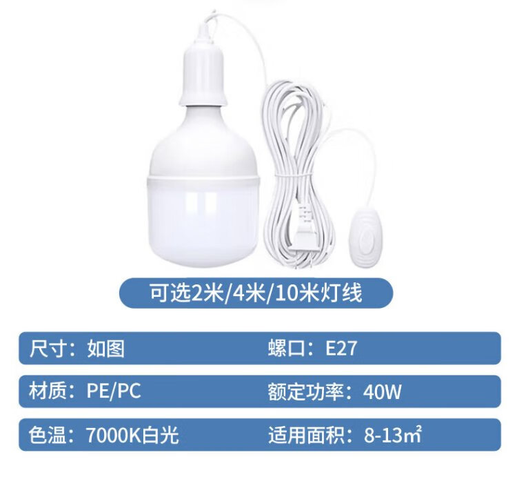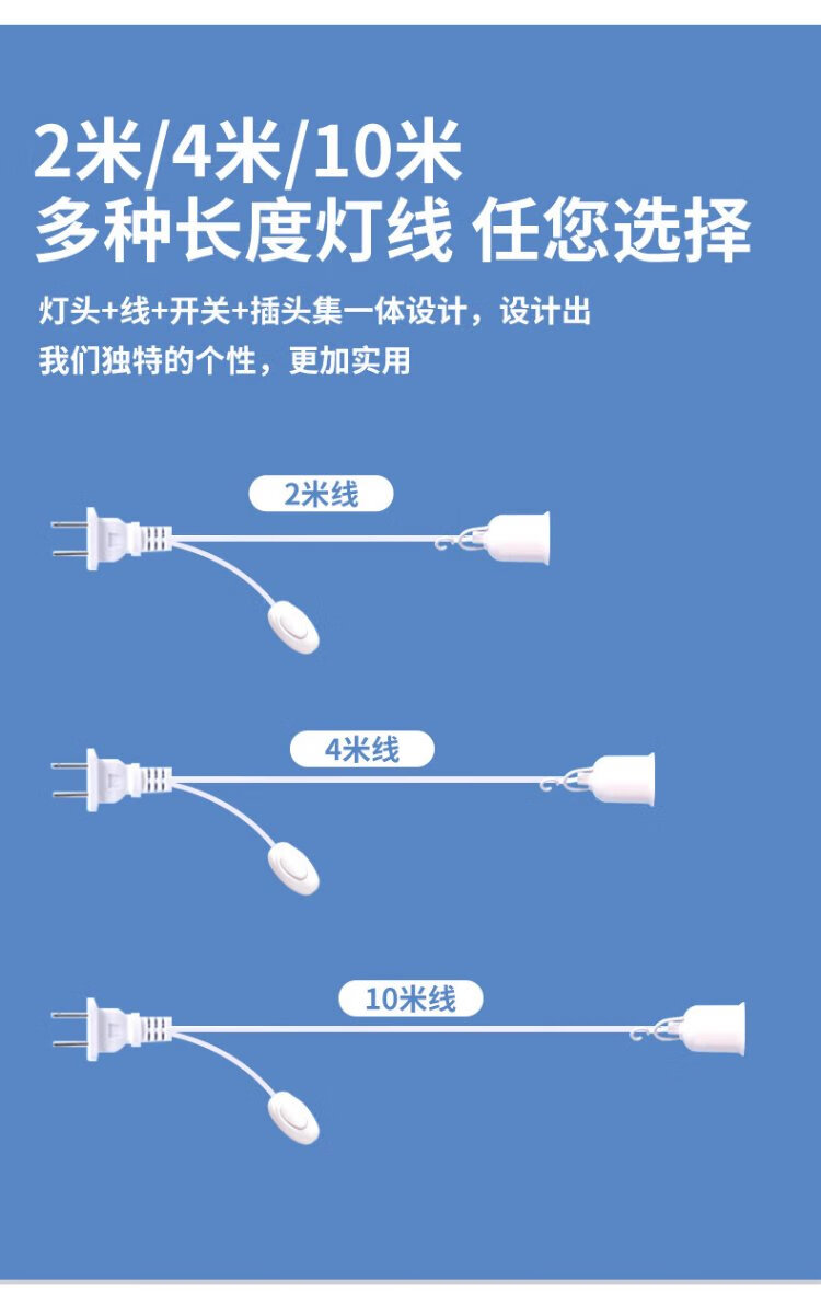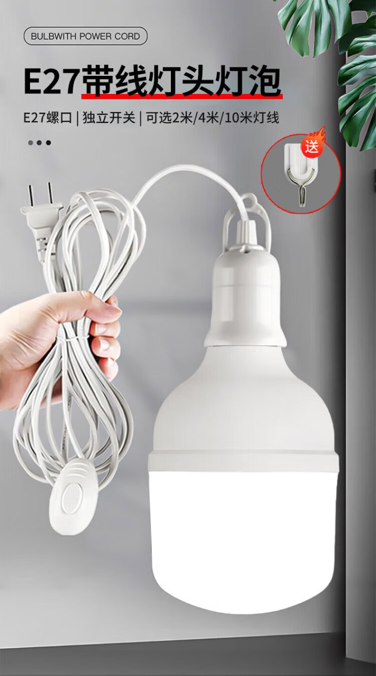 Magic color led light bulb plug integrated E27 screw socket energy-saving super bright home student dormitory socket chandelier switch extension cord hanging light strip line two plug 2 meters light cord + 1 40W bulb