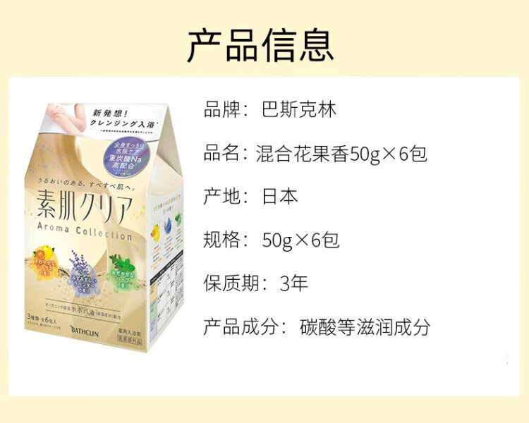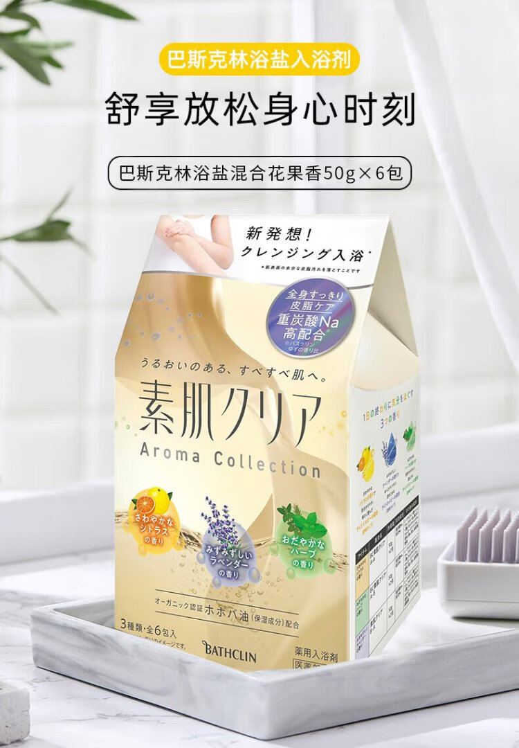 Baslin Carbonated Bath Salts 50g 6 packs, sleep aid, fatigue relief, exfoliation, bath salts, bath powder, foot powder