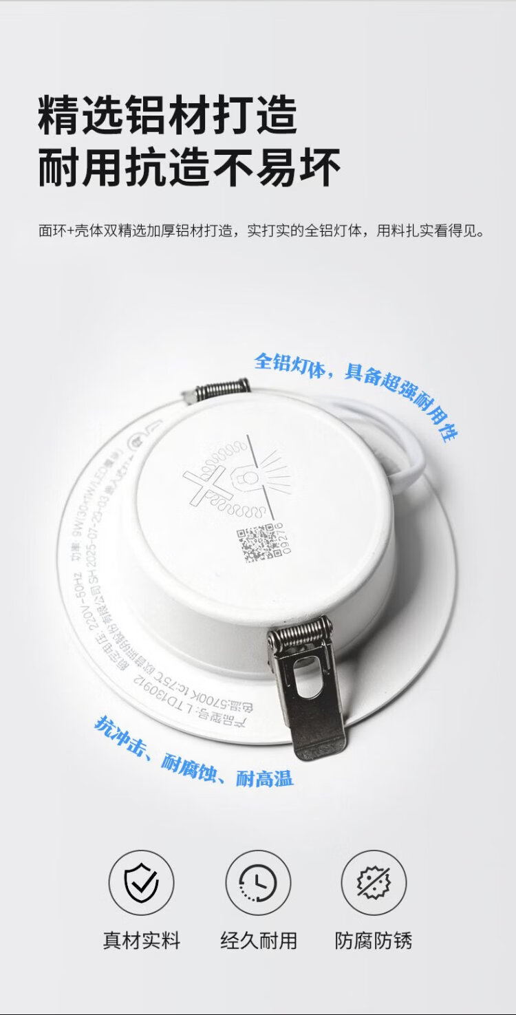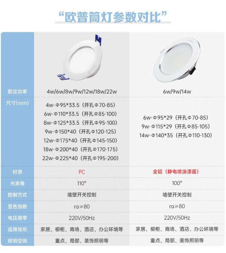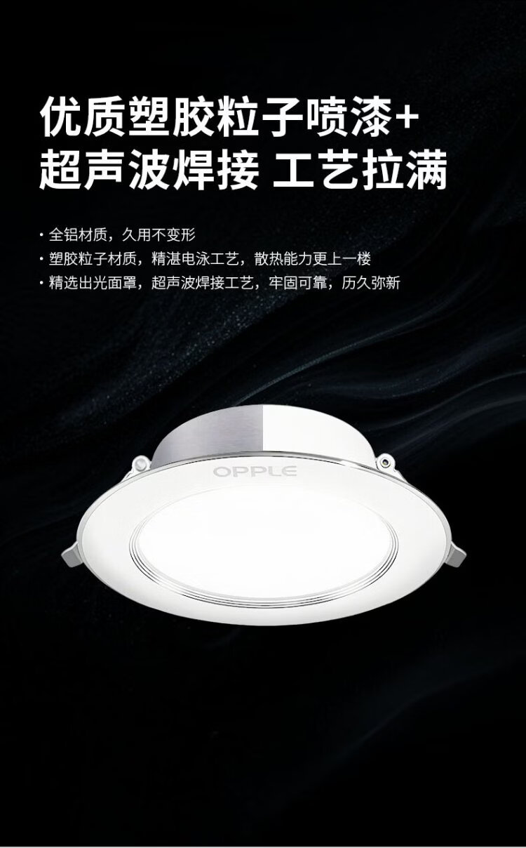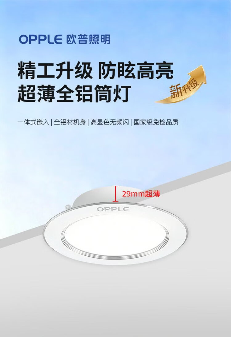 OPPLE LED downlight 9W high power ultra-thin all-aluminum embedded corridor aisle metal downlight 4 inches opening 85-105 yellow light