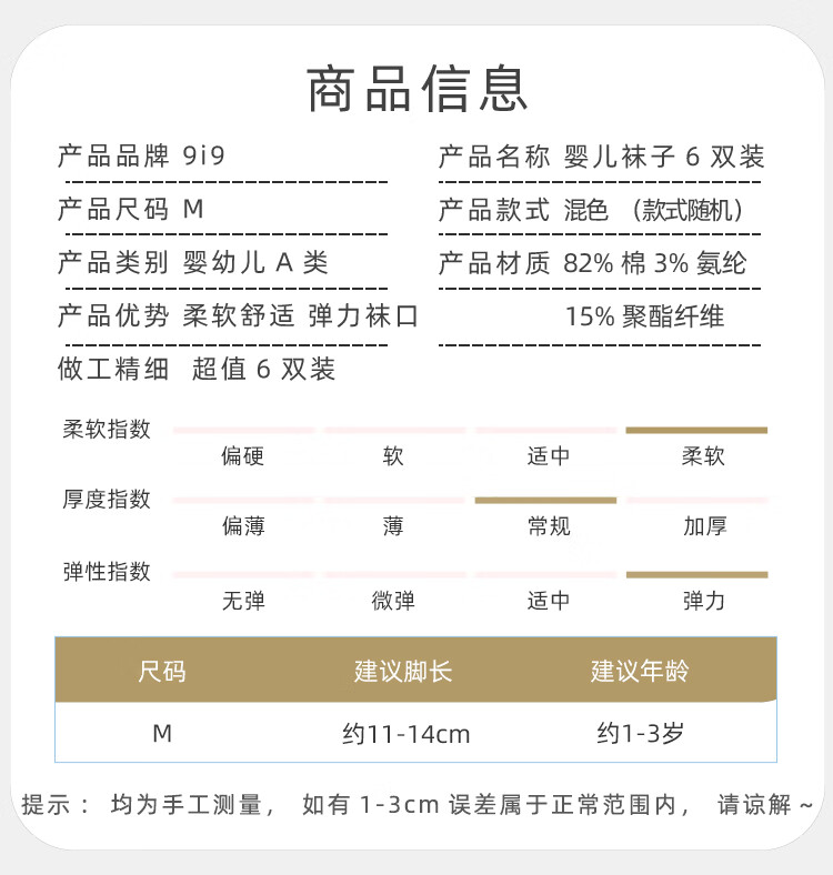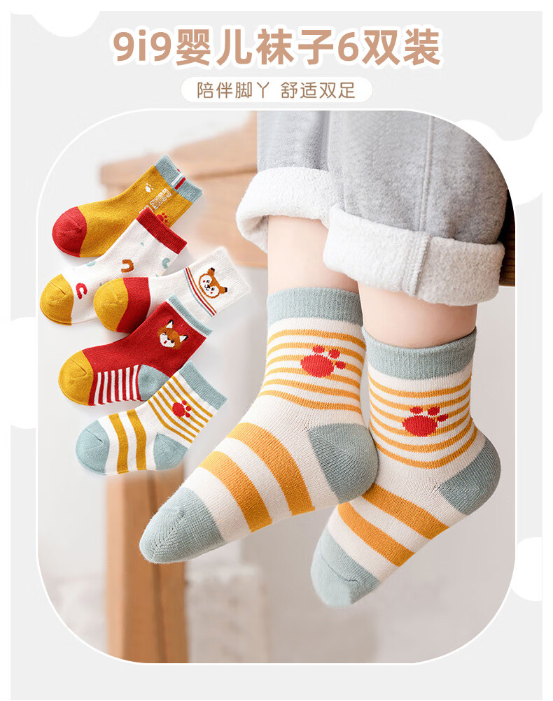 9i9 children's socks spring and autumn baby children cotton socks baby socks 6 pairs pack A category 1-3 years old A41 cartoon