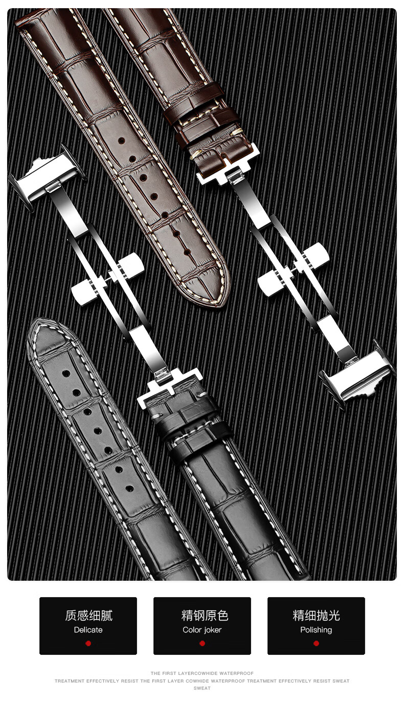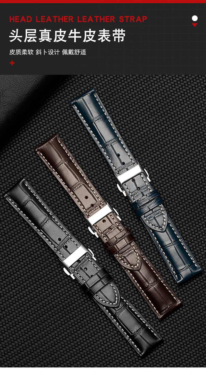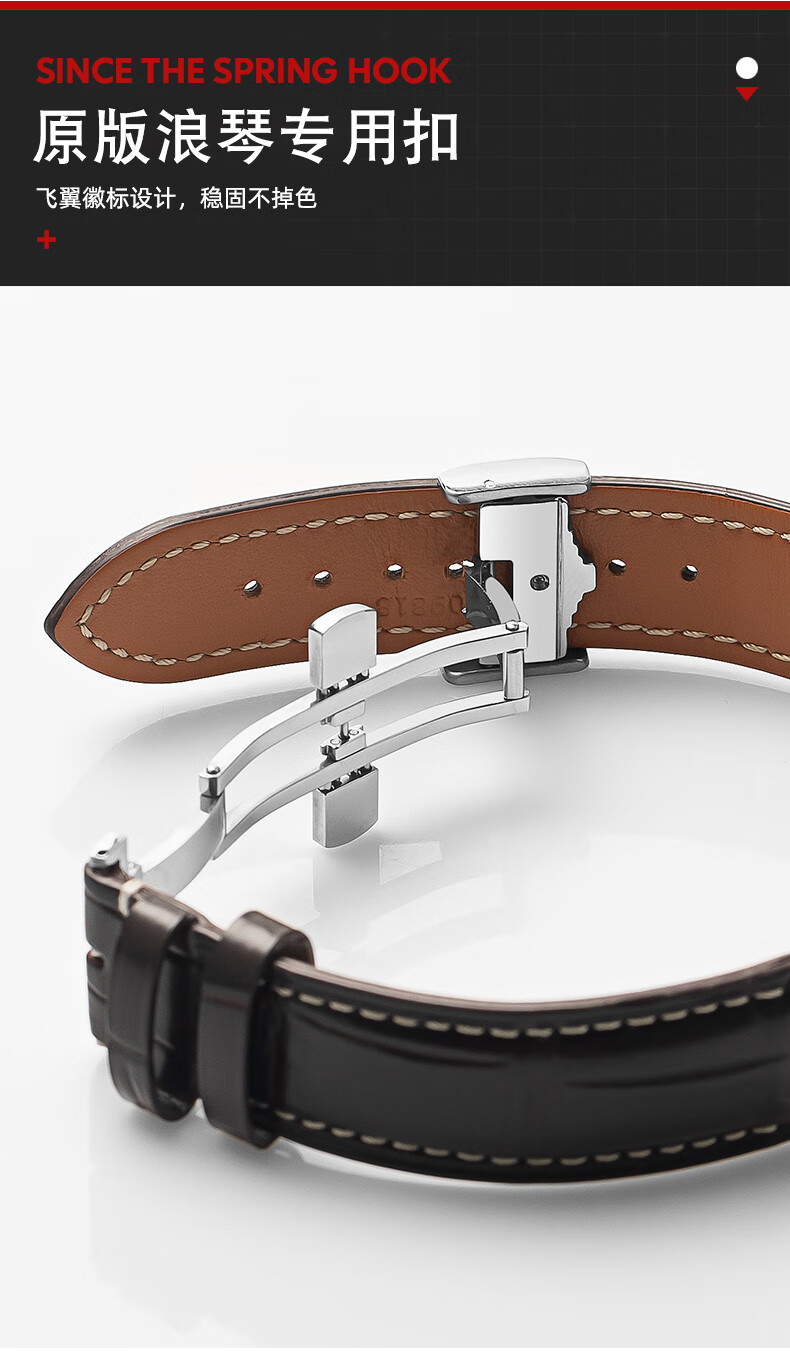 Wanchen Longines watch strap men's genuine leather suitable for famous craftsman Concas magnificent moon phase flying wing buckle dark brown 20mm