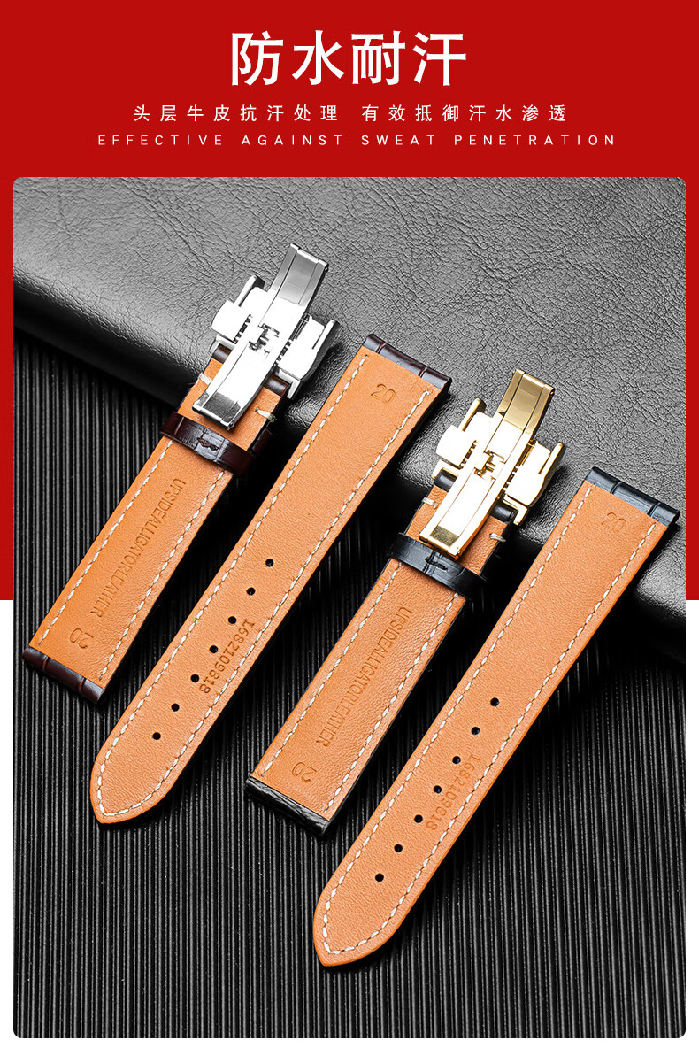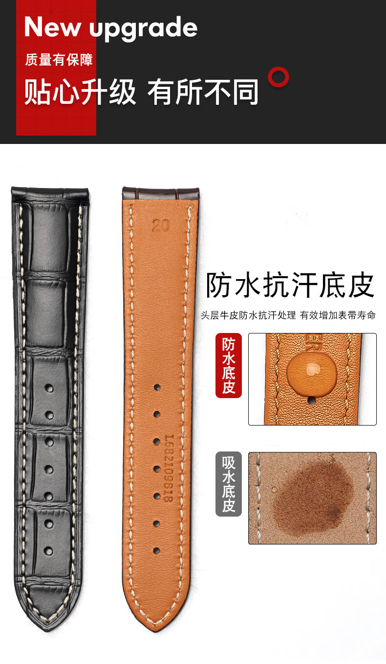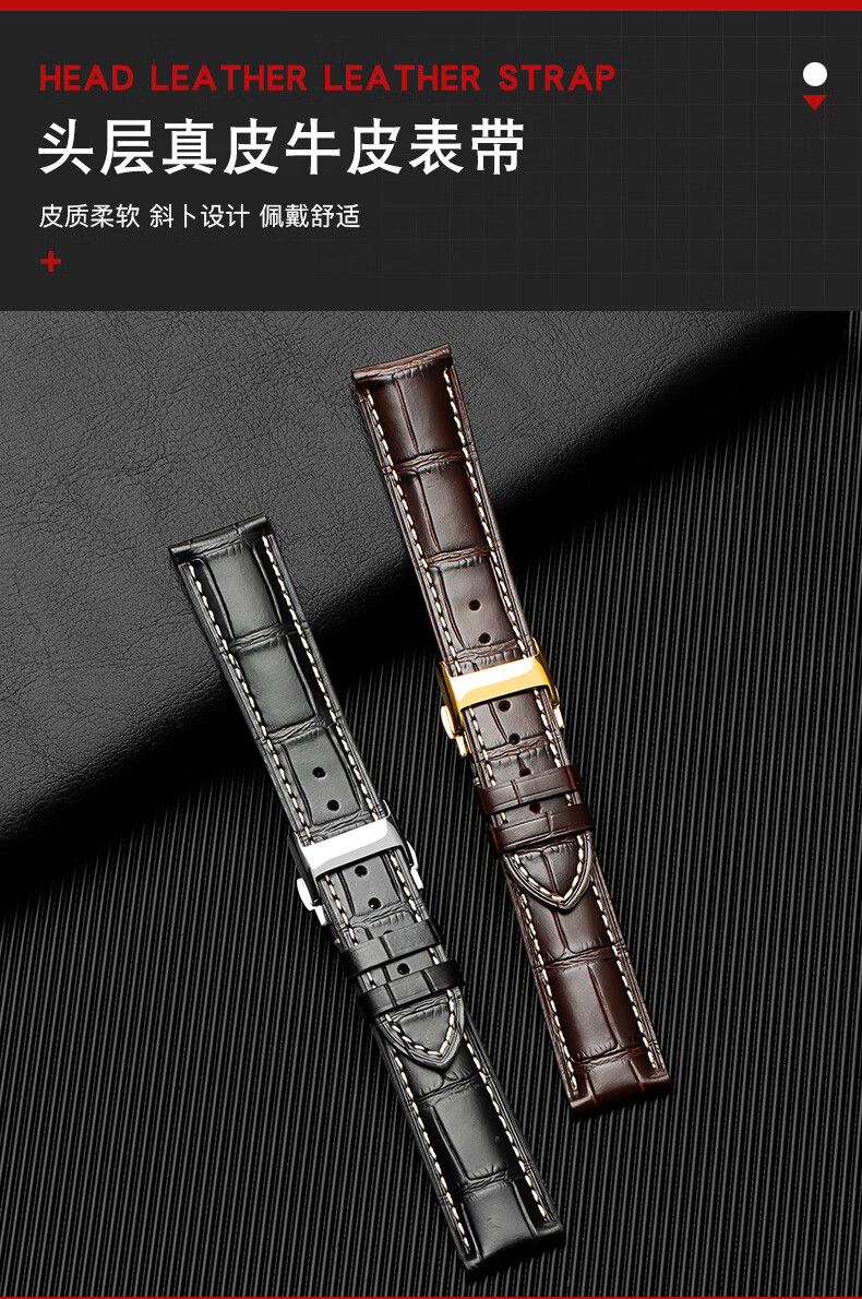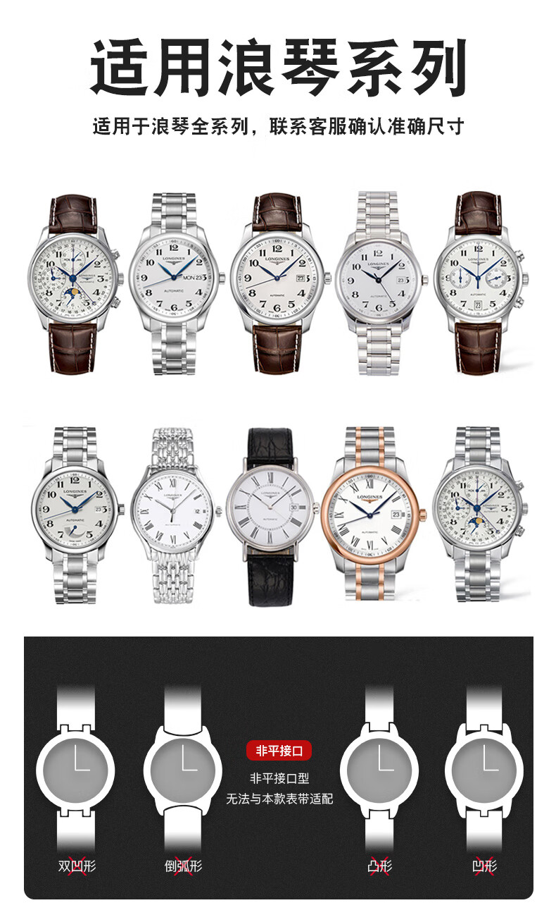 Wanchen Longines watch strap men's genuine leather suitable for famous craftsman Concas magnificent moon phase flying wing buckle dark brown 20mm