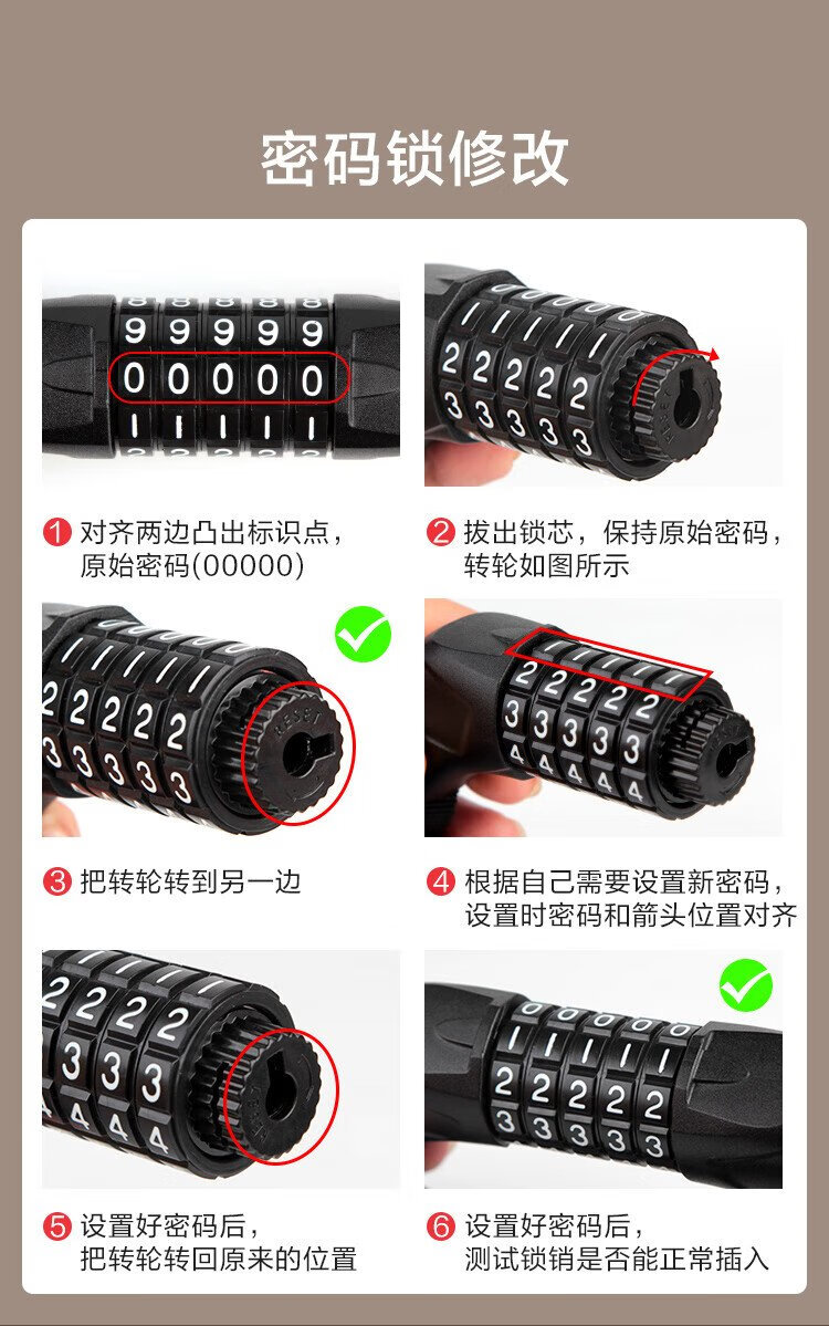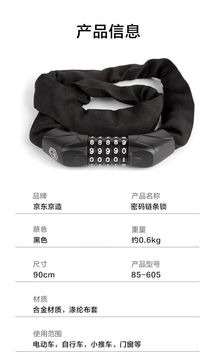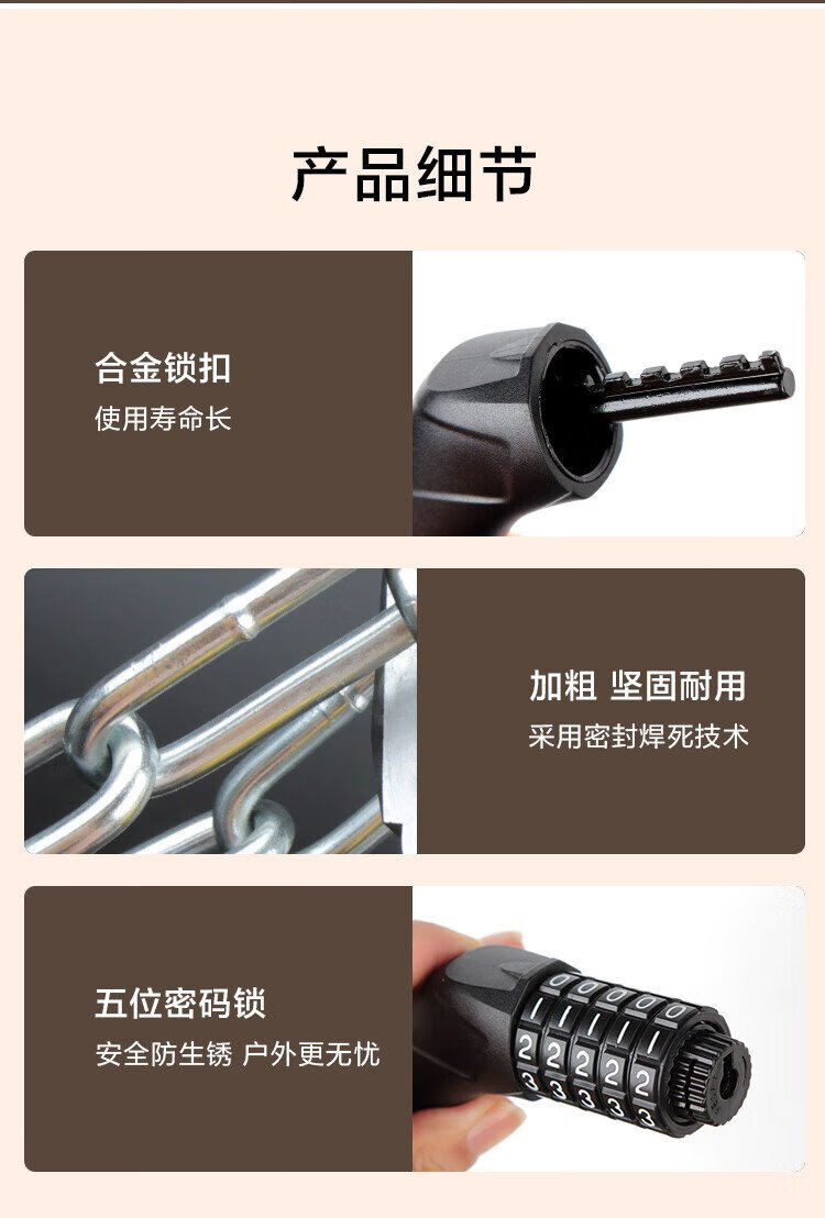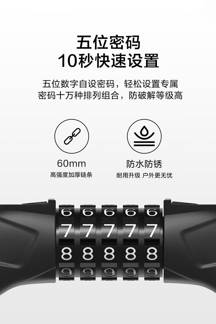 Beijing-made bicycle lock five-digit password anti-theft lock chain lock electric battery bike mountain bike lock riding accessories 90cm