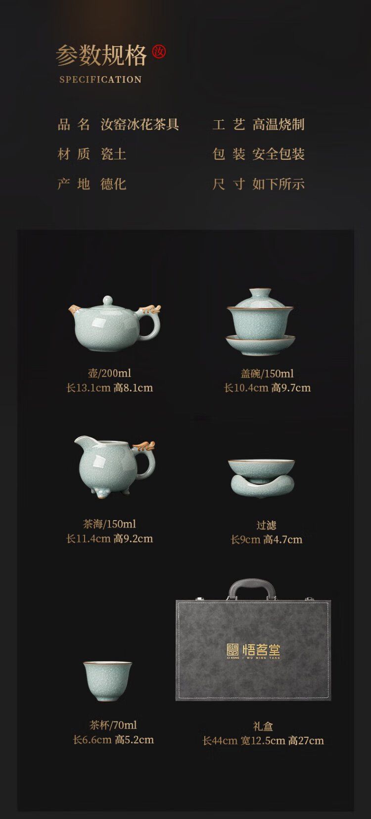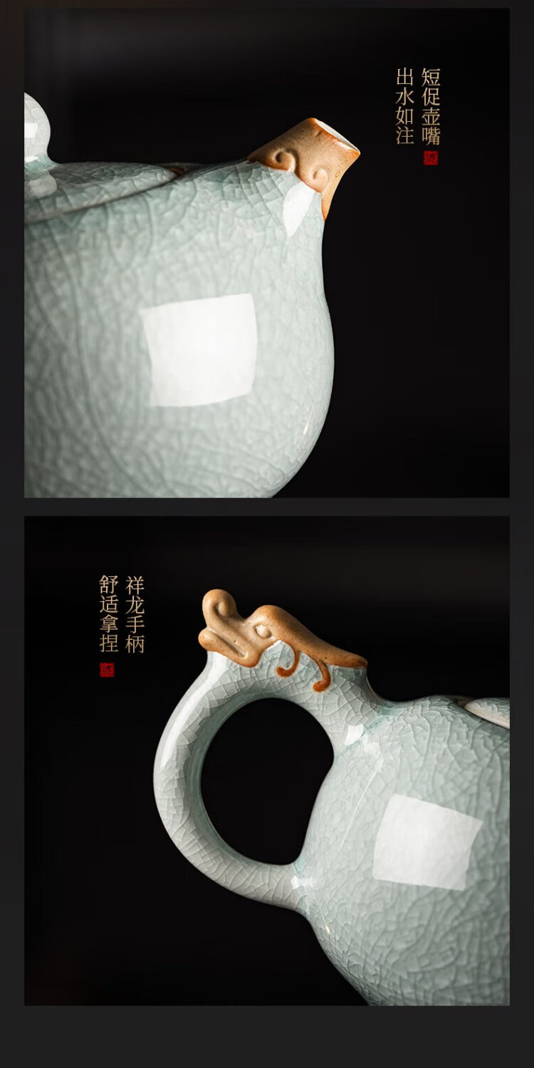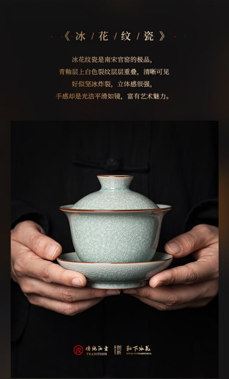Wu Ming Tang Ru kiln ice flower glaze tea set complete set of opening slices can grow teapot lid bowl teacup high-end gift box