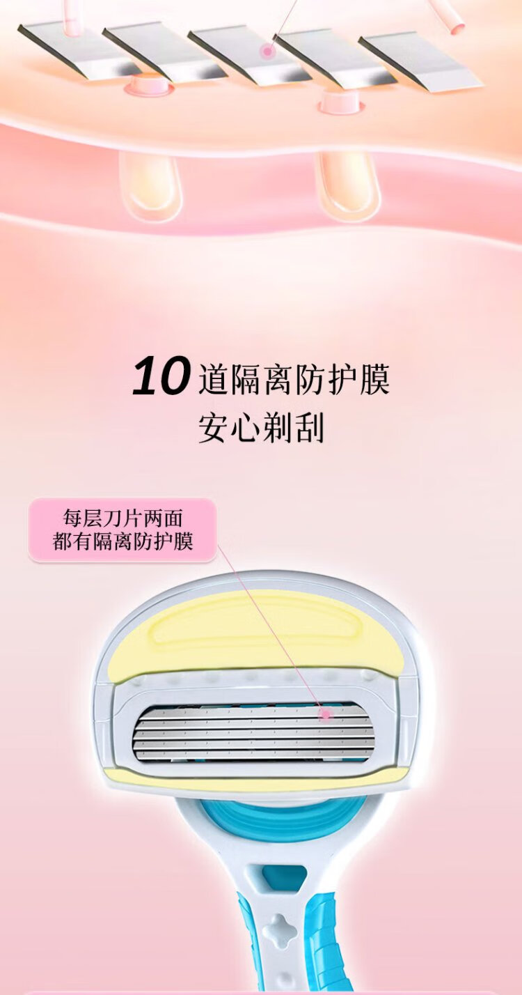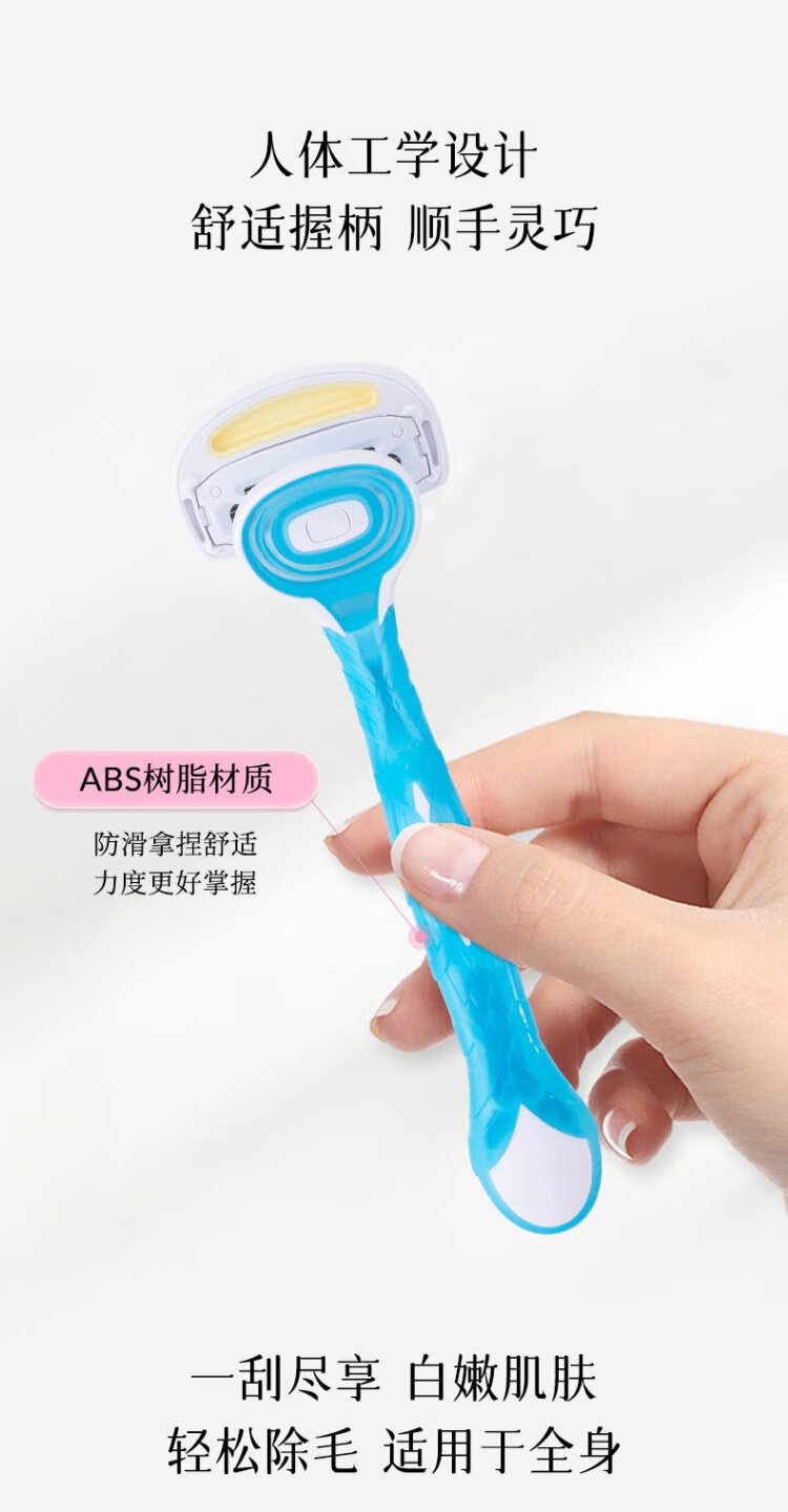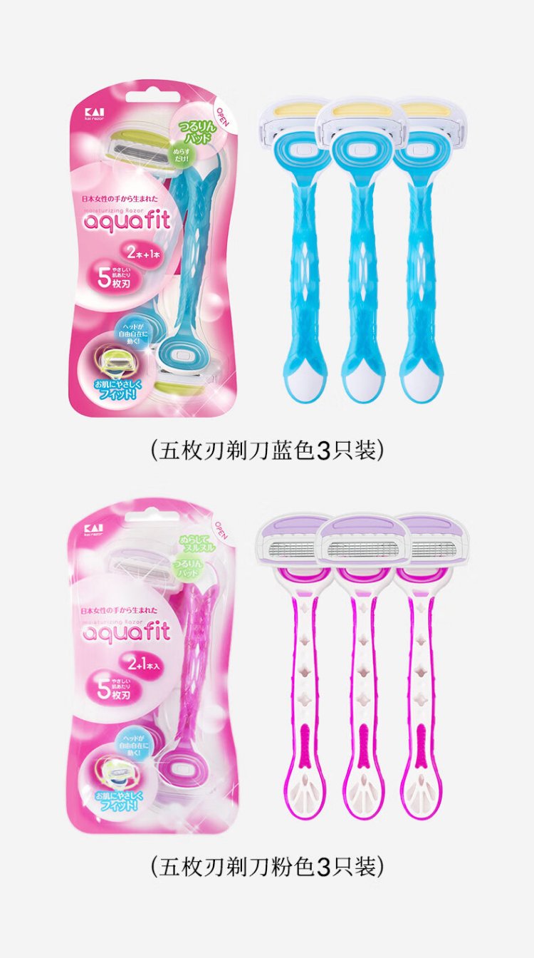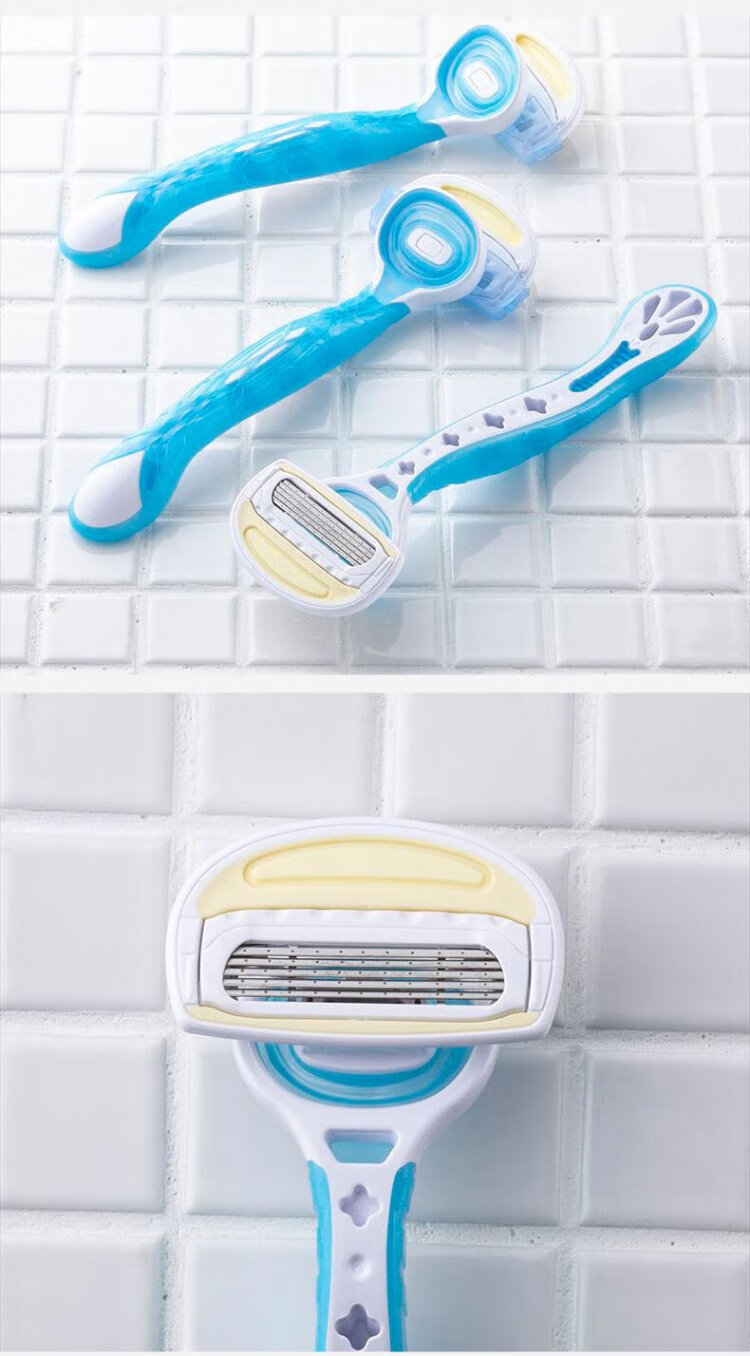 Beiyin imported women's 5-layer epilator private armpit hair shaver shaving razor without sting (pack of 3) blue