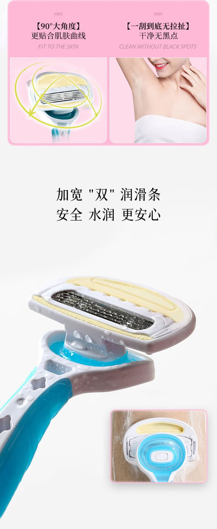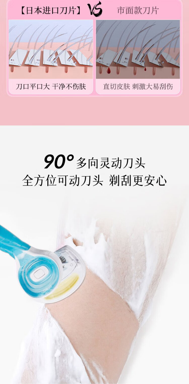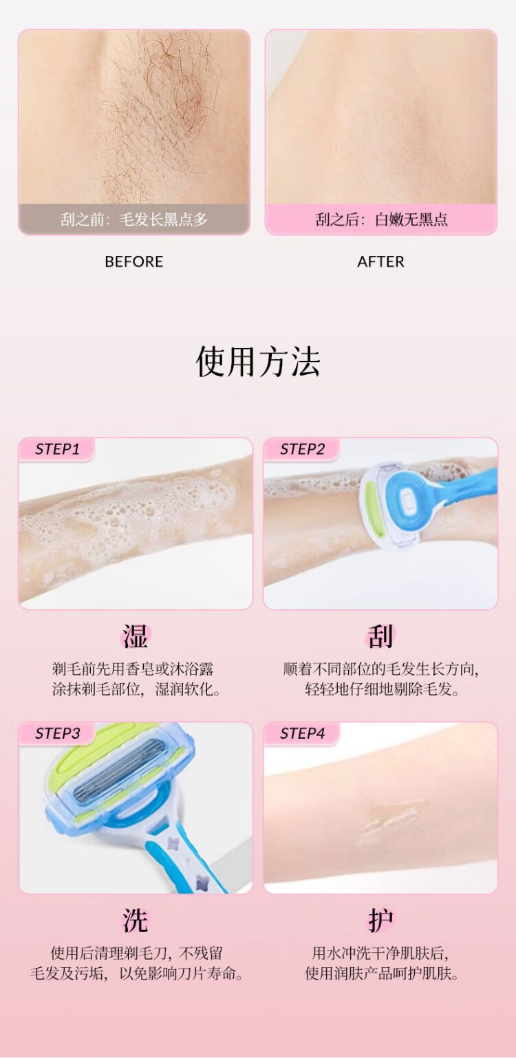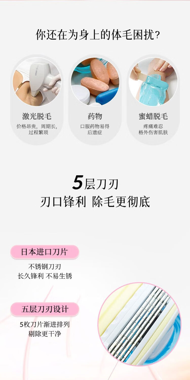 Beiyin imported women's 5-layer epilator private armpit hair shaver shaving razor without sting (pack of 3) blue