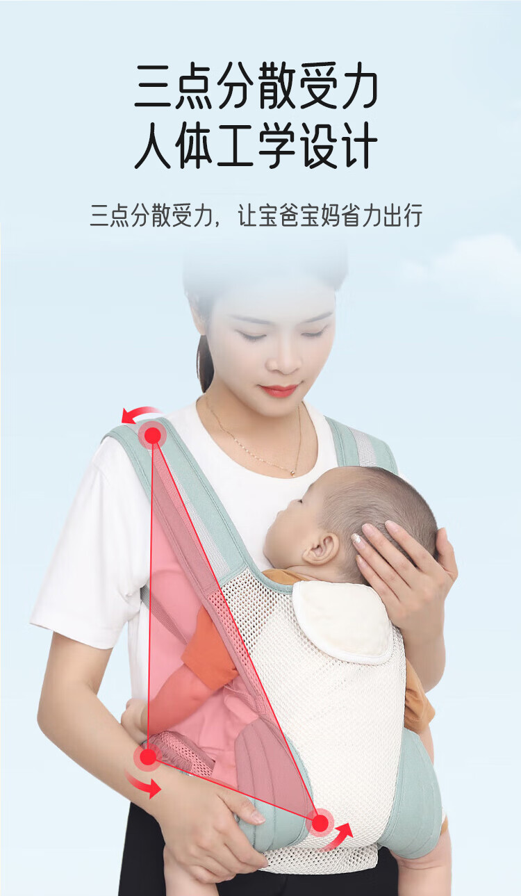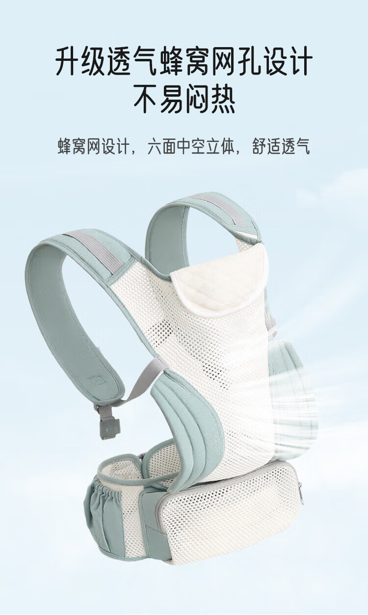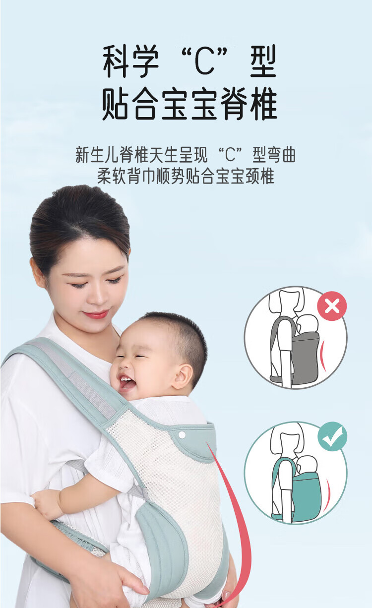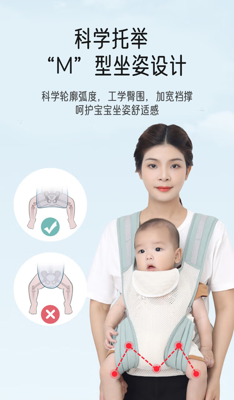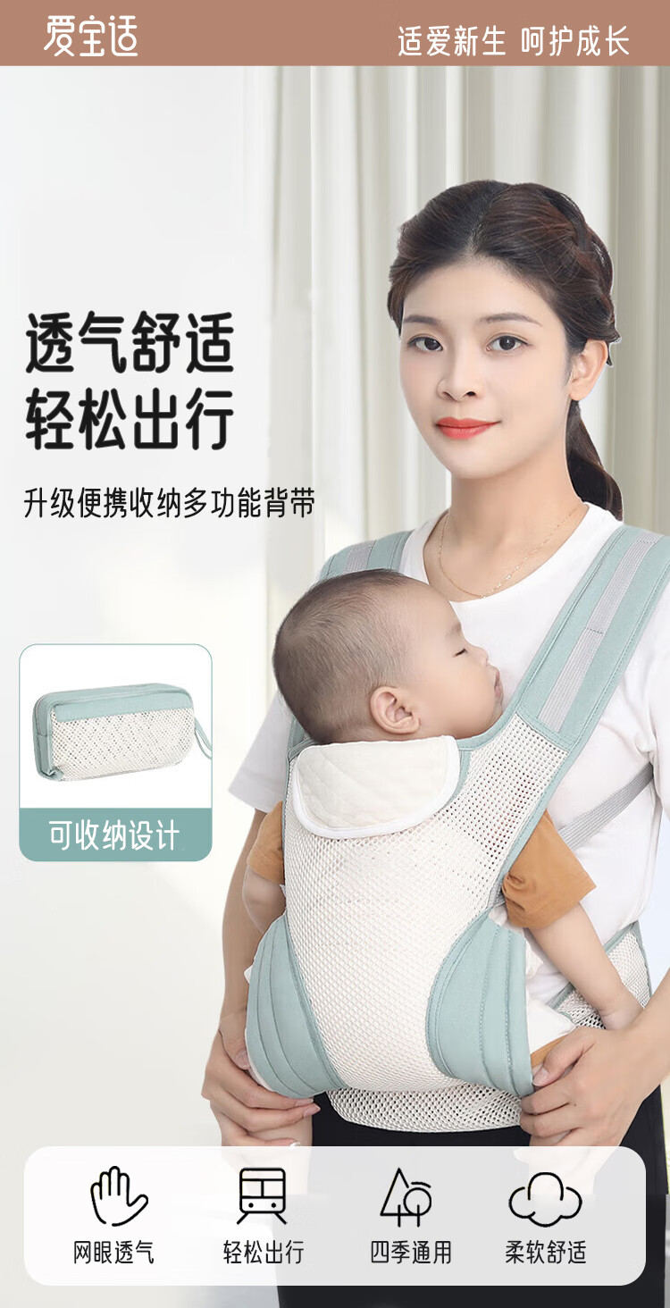 Aibaoxi baby sling, baby carrier, newborn baby carrier, portable storage, front and back hug, light green M394