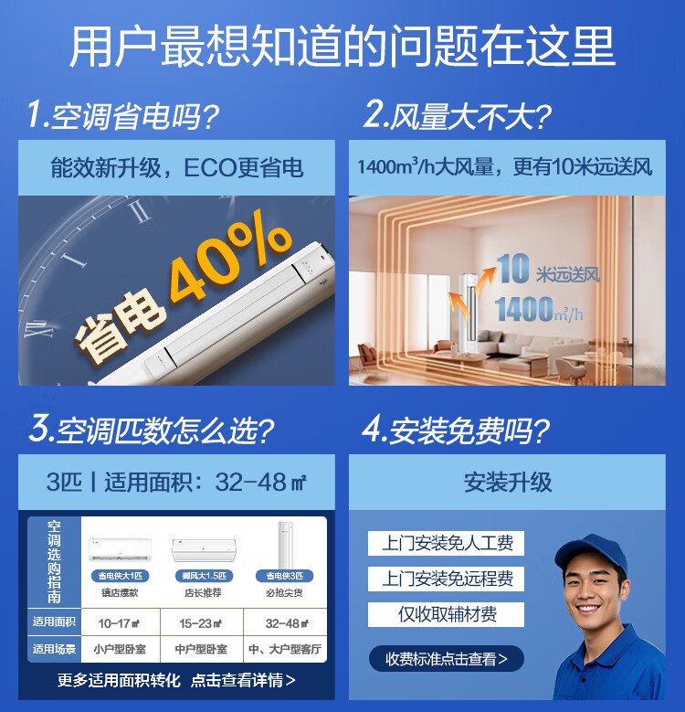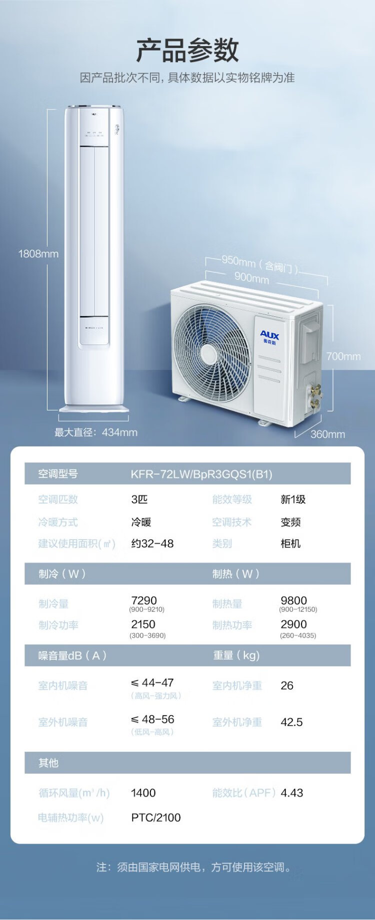 Oaks 3 HP air conditioner cabinet, power saver, new level of energy efficiency, variable frequency heating and cooling, home silent standing cabinet living room, anti-direct blowing, national subsidy KFR-72LW/BpR3GQS1 (B1)