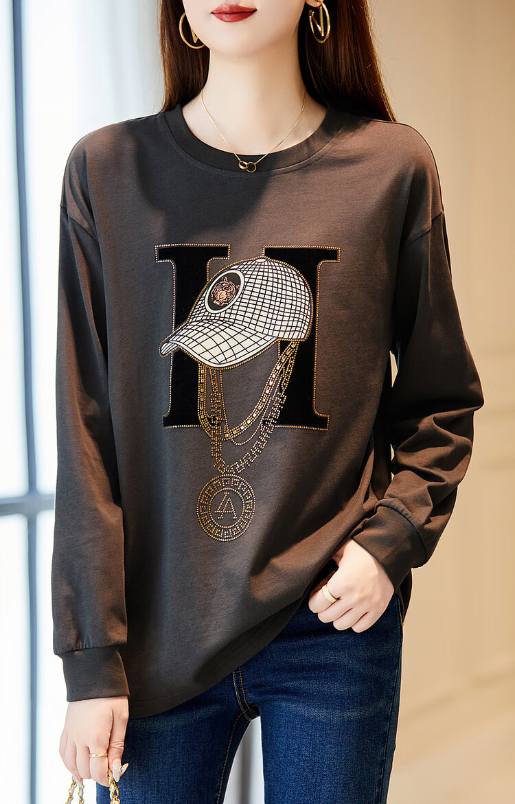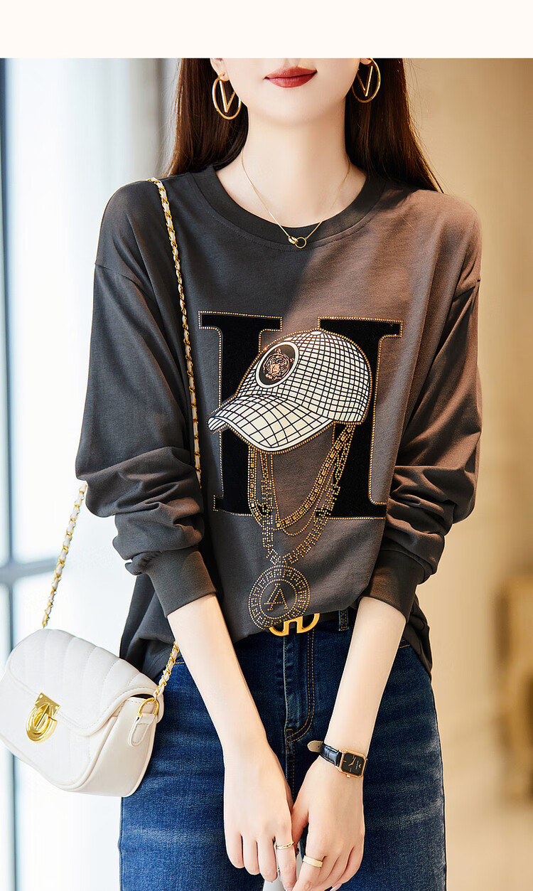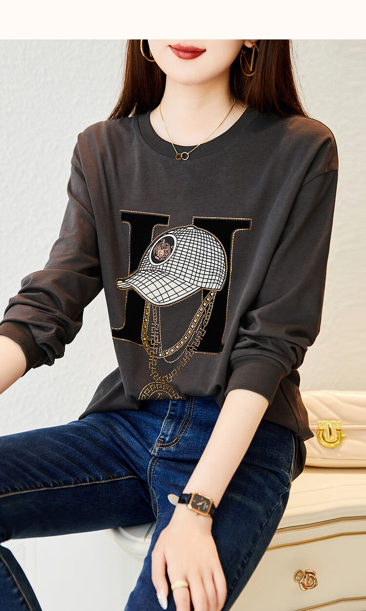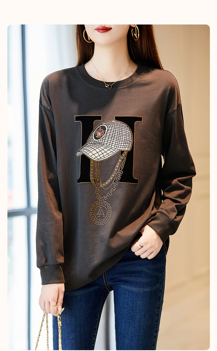 Demana Miracle Fairy Tale Town Spring and Autumn cloud soft feeling niche pure cotton design hot diamond long-sleeved temperament women's T-shirt