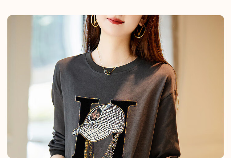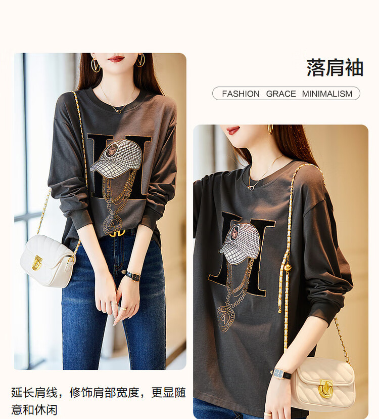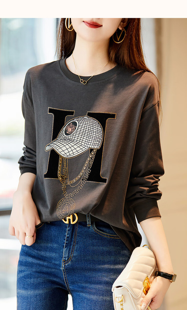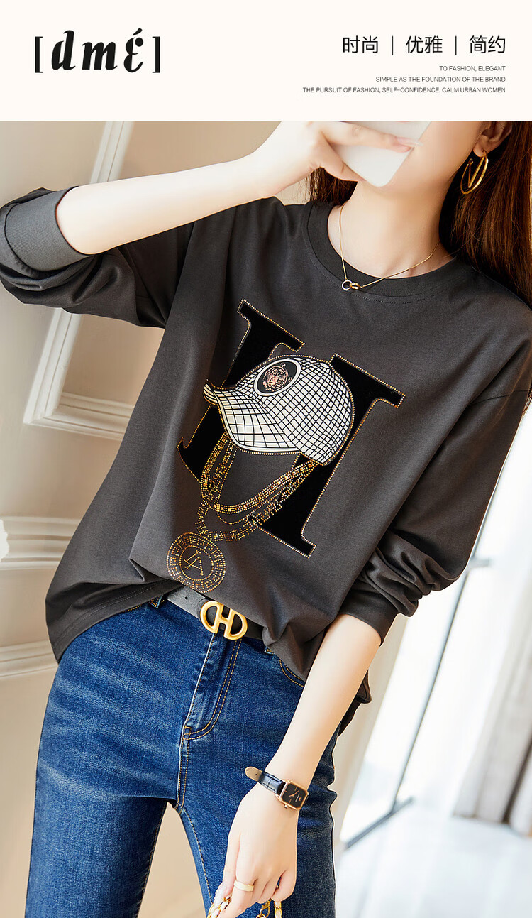 Demana Miracle Fairy Tale Town Spring and Autumn cloud soft feeling niche pure cotton design hot diamond long-sleeved temperament women's T-shirt