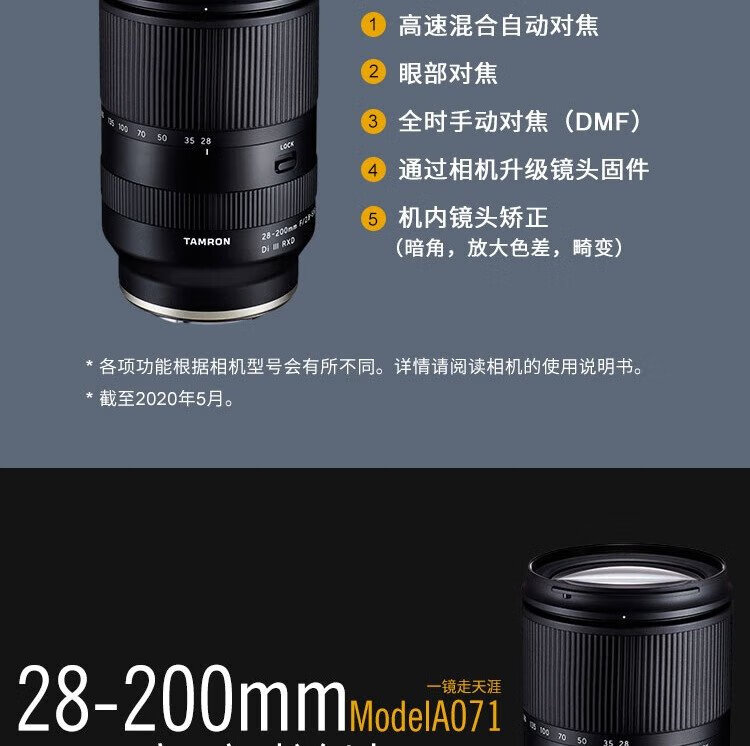 Tamron A071S 28-200mm F/2.8-5.6 Di III RXD Sony FE port Double Eleven last wave full-frame mirrorless lens large zoom Tianya lens