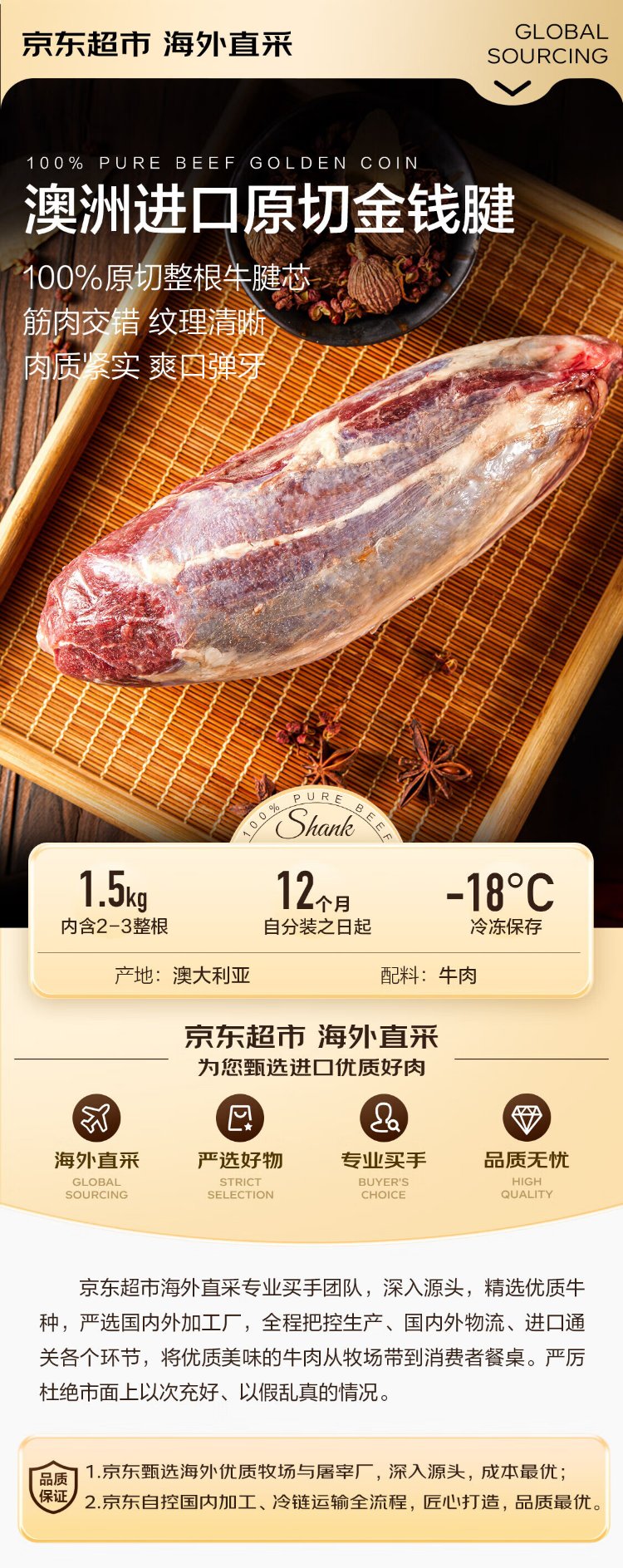 Jingdong Supermarket directly purchases raw beef tendon imported from Australia, net weight 3Jin Jin is equal to 0.5kg, contains 2~3 tendon cores, self-operated beef