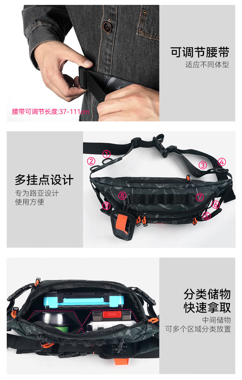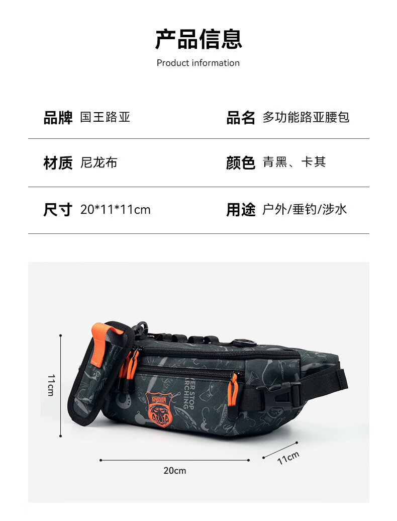 King Lua Lua bag multifunctional small waist bag crossbody shoulder bag fishing gear bag wear-resistant and water-repellent khaki