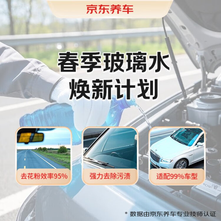 Jingdong car maintenance adds glass water service for cleaning, decontamination, anti-fog and anti-corrosion for clear driving in spring and is suitable for many models