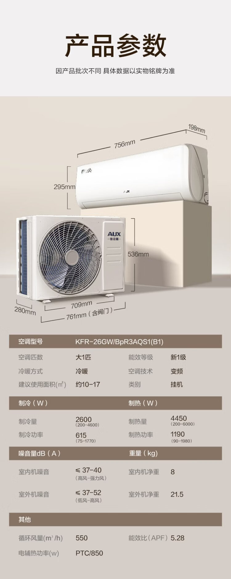 Кондиционер Oaks, энергосбережение, на 1 лошадь больше, инвертор нового уровня энергоэффективности, энергосбережение, обогрев и охлаждение, защита от прямого выдувания, кондиционер из чистой меди, национальная субсидия KFR-26GW/BpR3AQS1(B1)