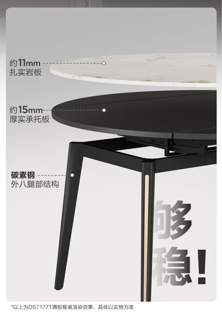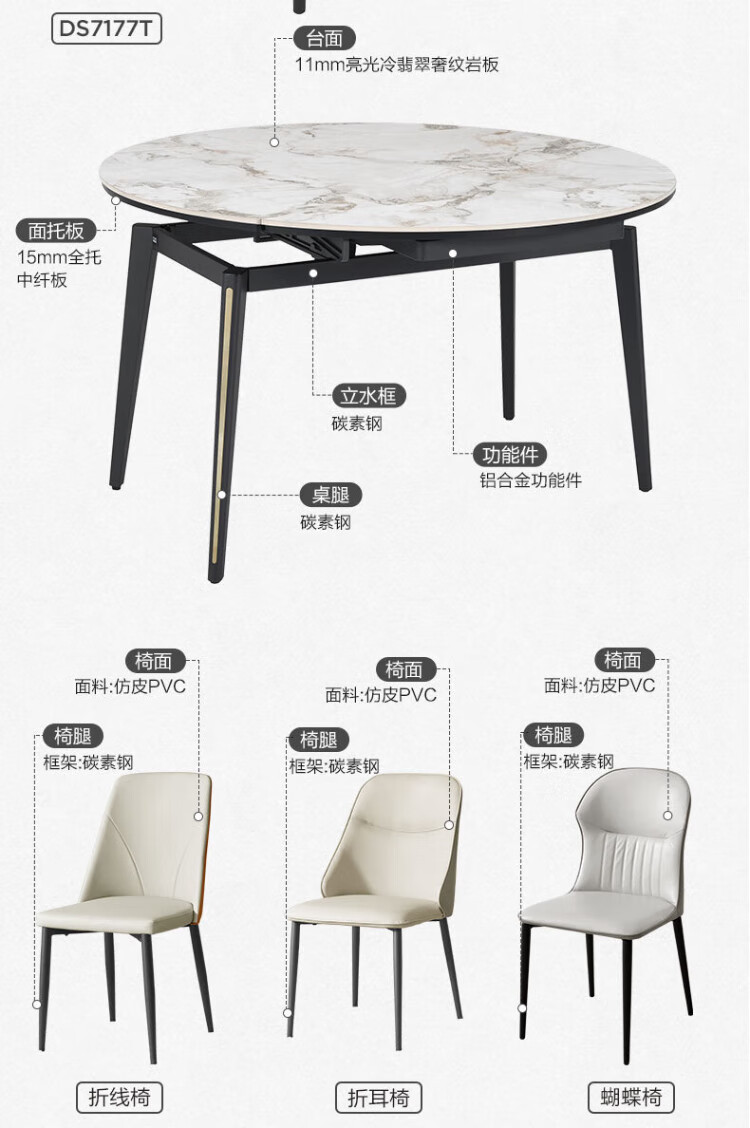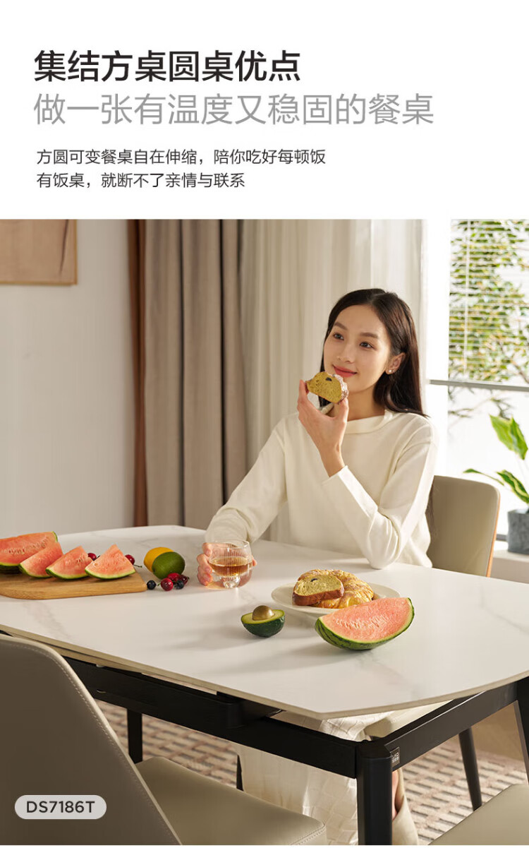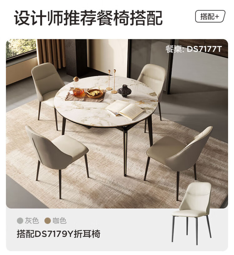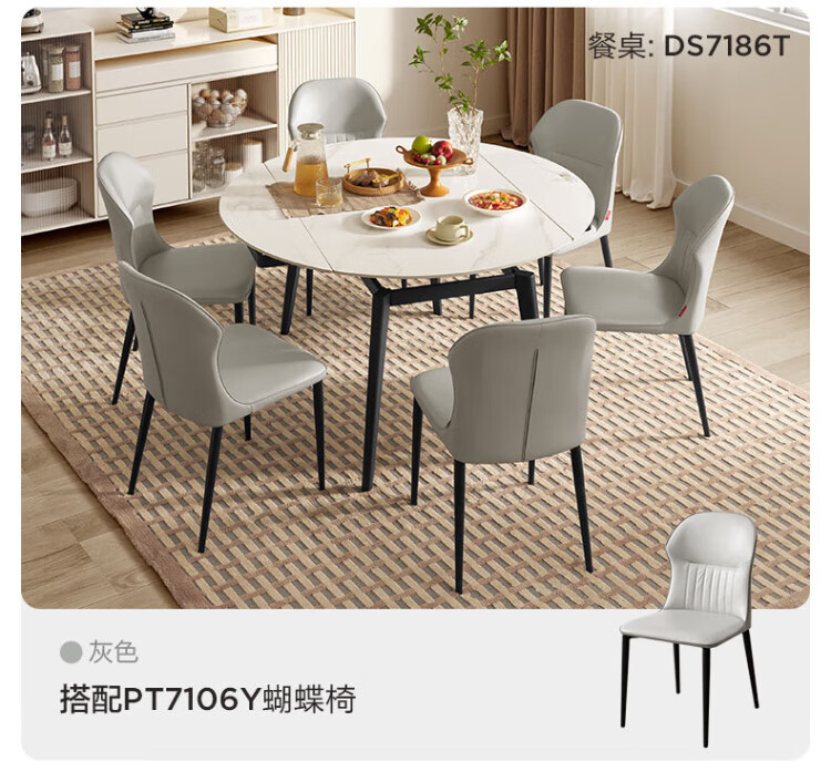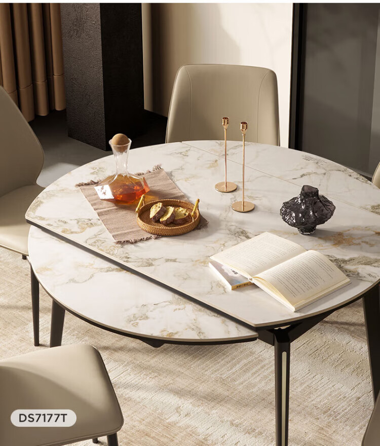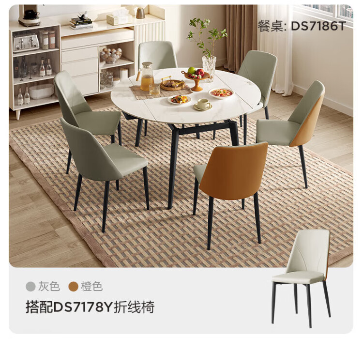 KUKA modern slate dining table and chairs for home square to round retractable round table DS7186T dining table + folded gray chairs *6
