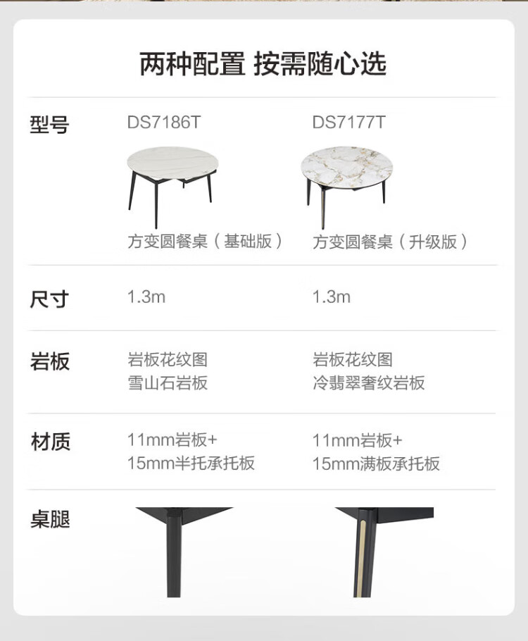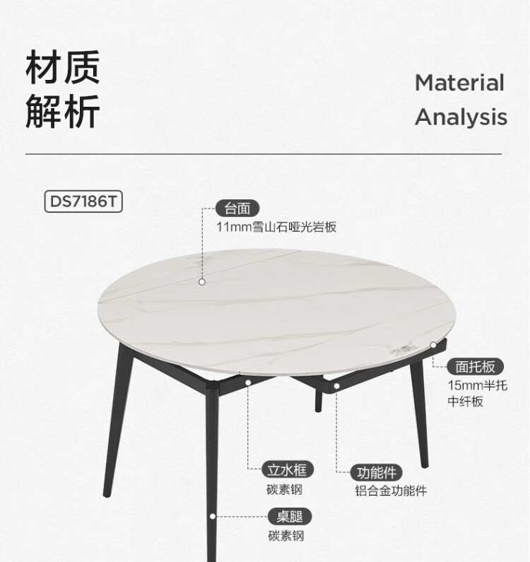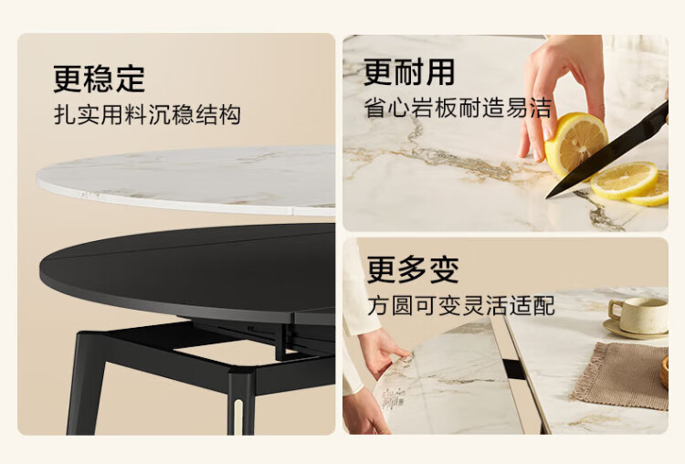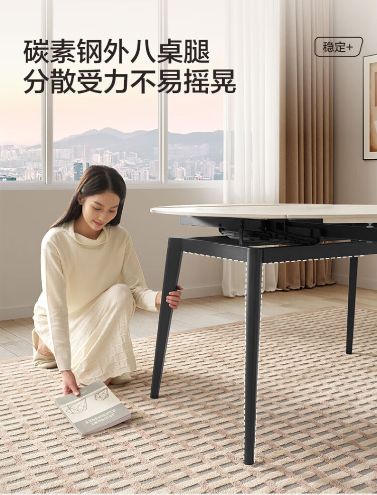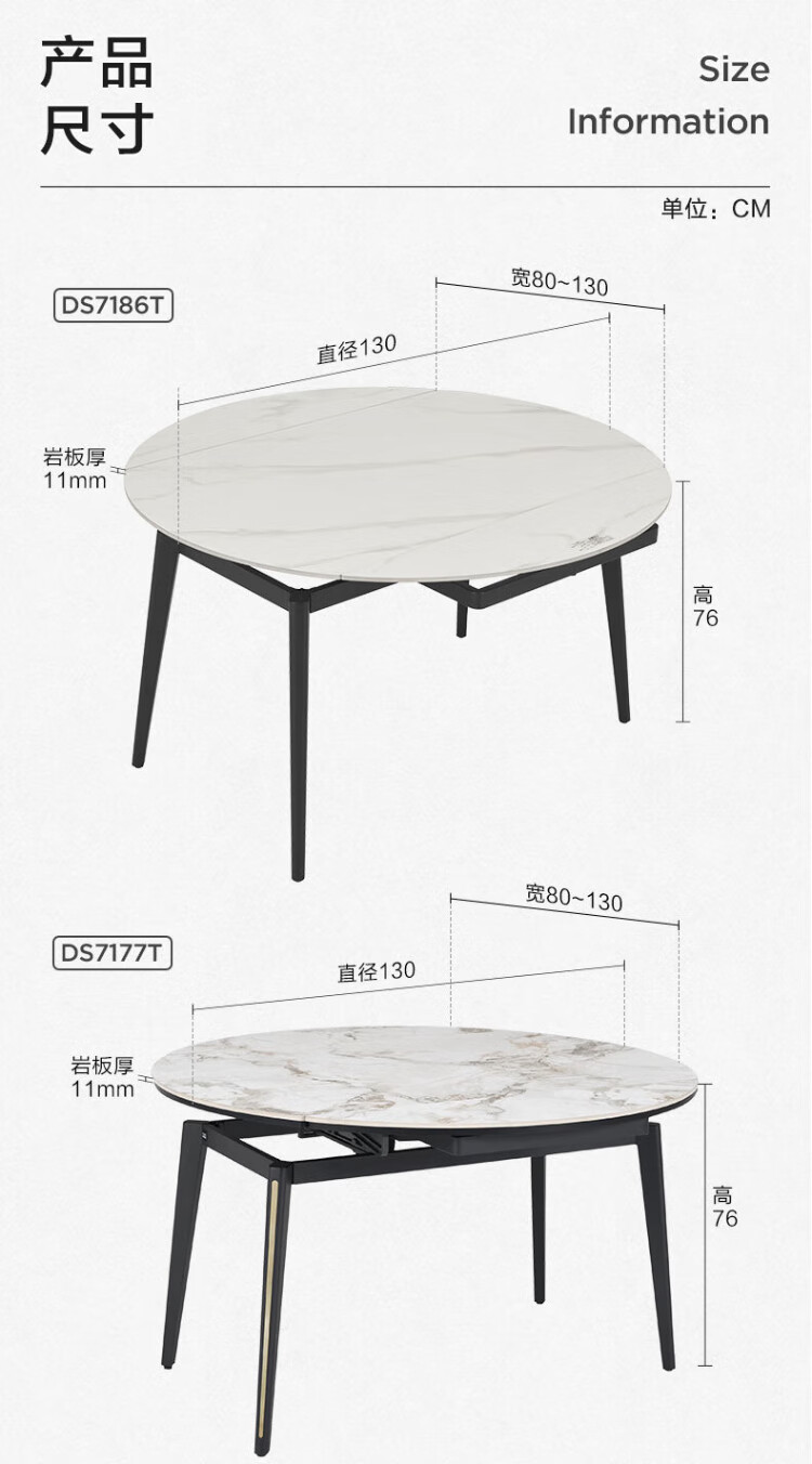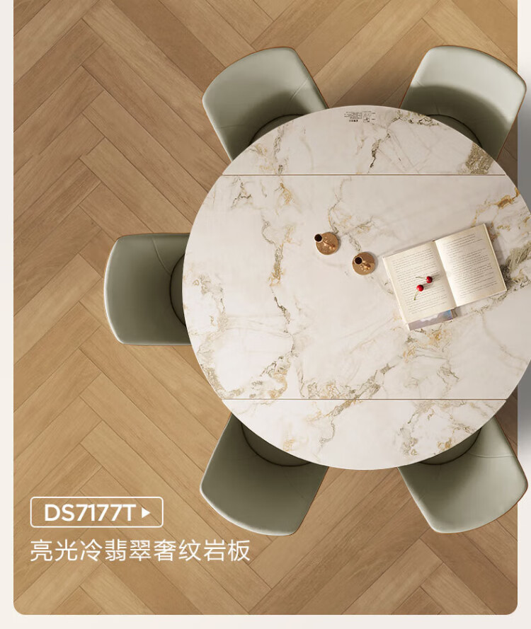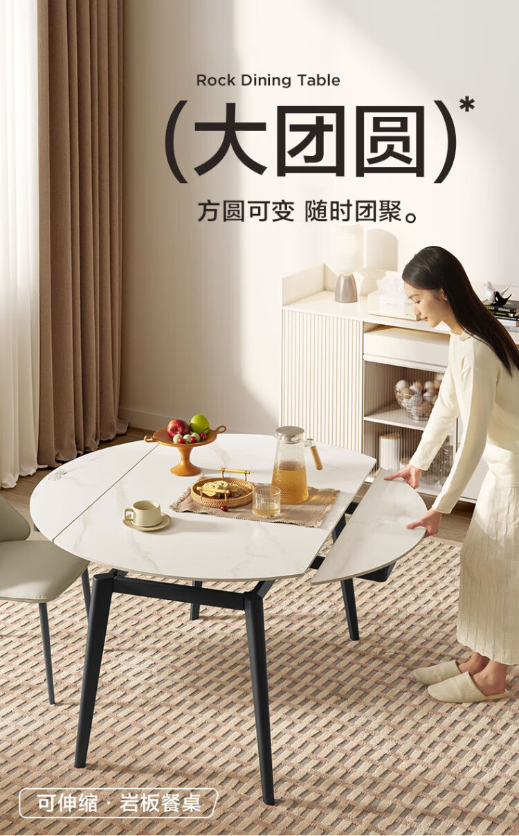 KUKA modern slate dining table and chairs for home square to round retractable round table DS7186T dining table + folded gray chairs *6