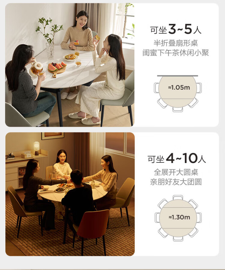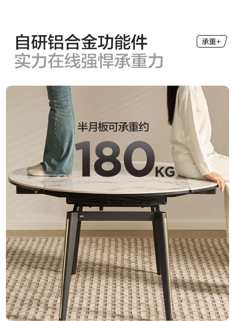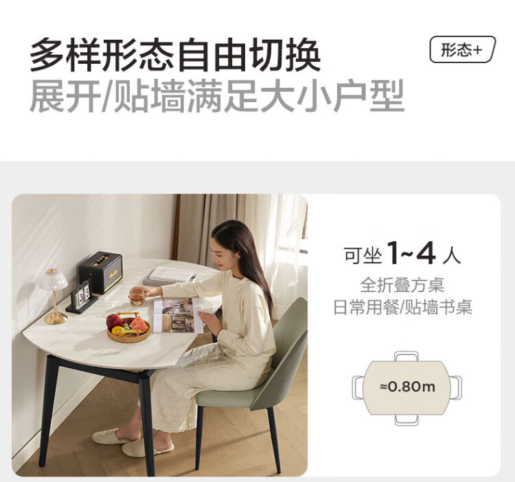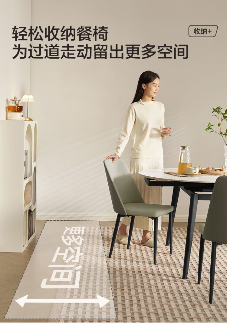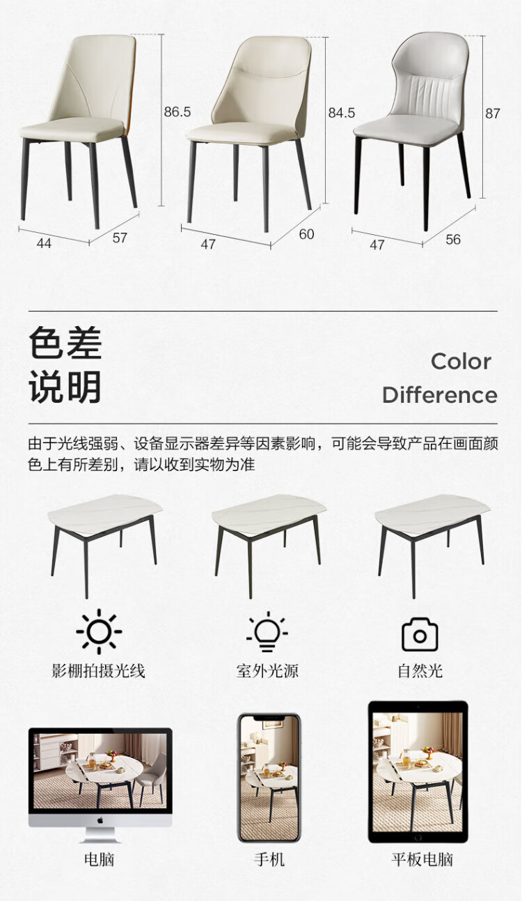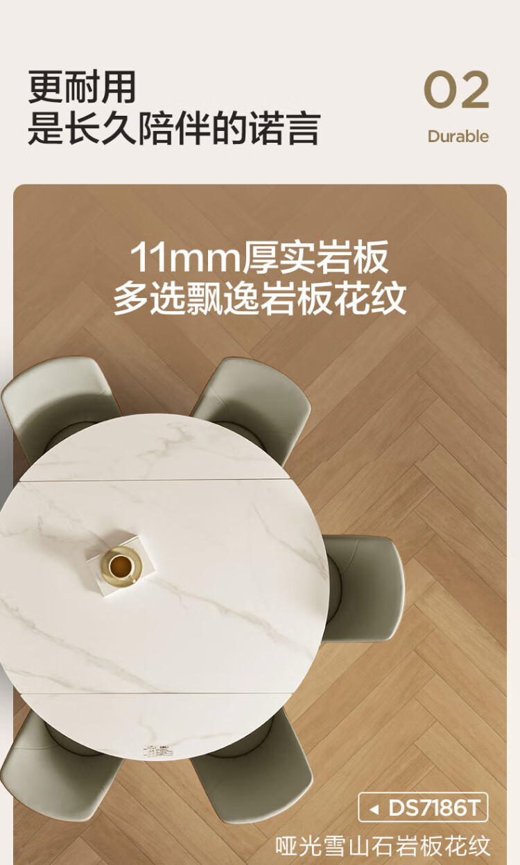KUKA modern slate dining table and chairs for home square to round retractable round table DS7186T dining table + folded gray chairs *6