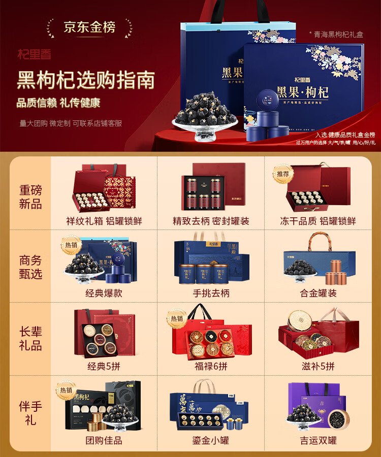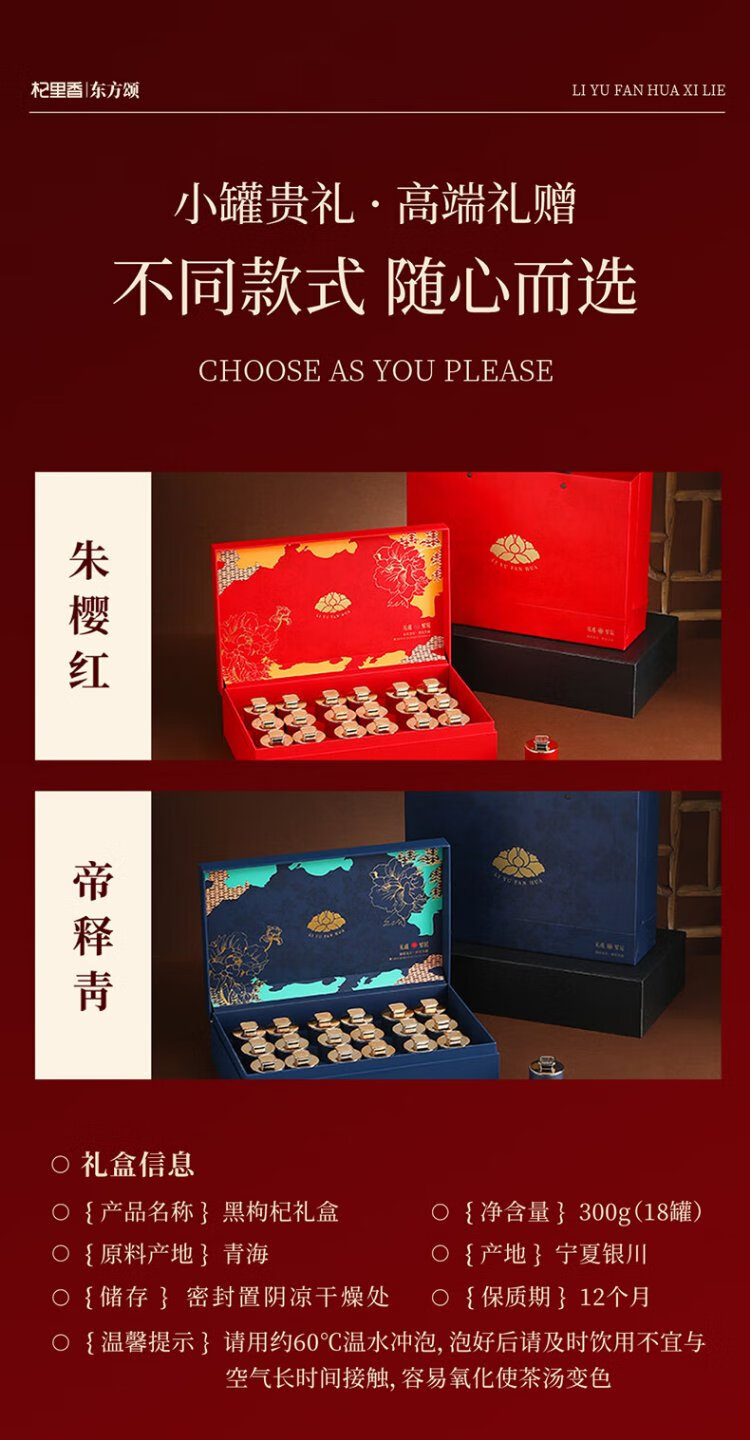 Qilixiang black wolfberry gift box 300g (18 cans) practical new year gift for elders parents parent tonic group purchase