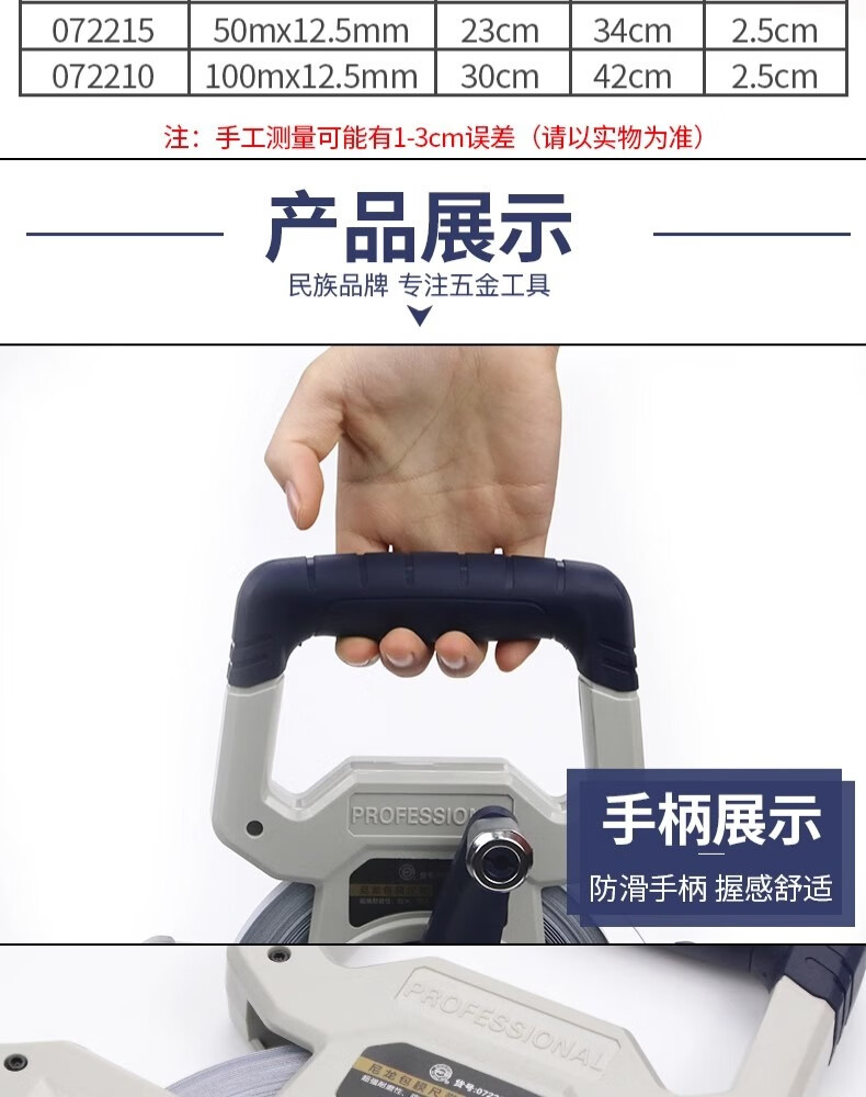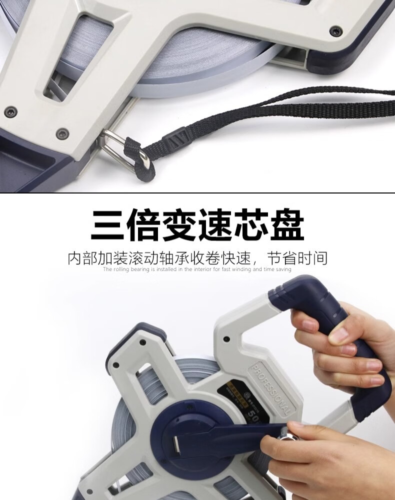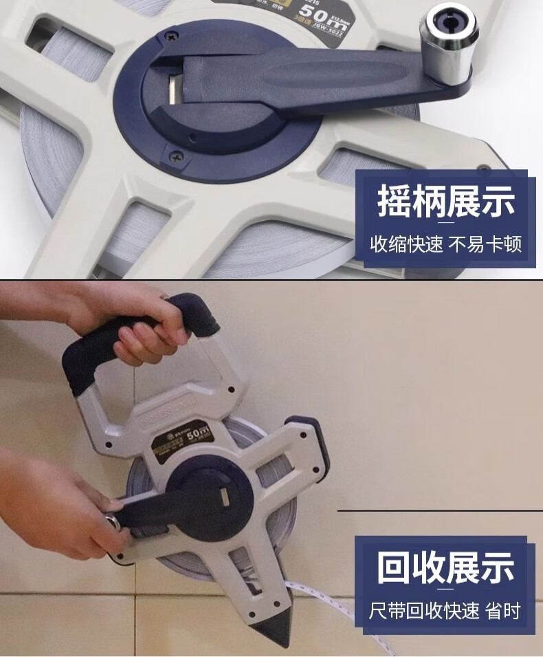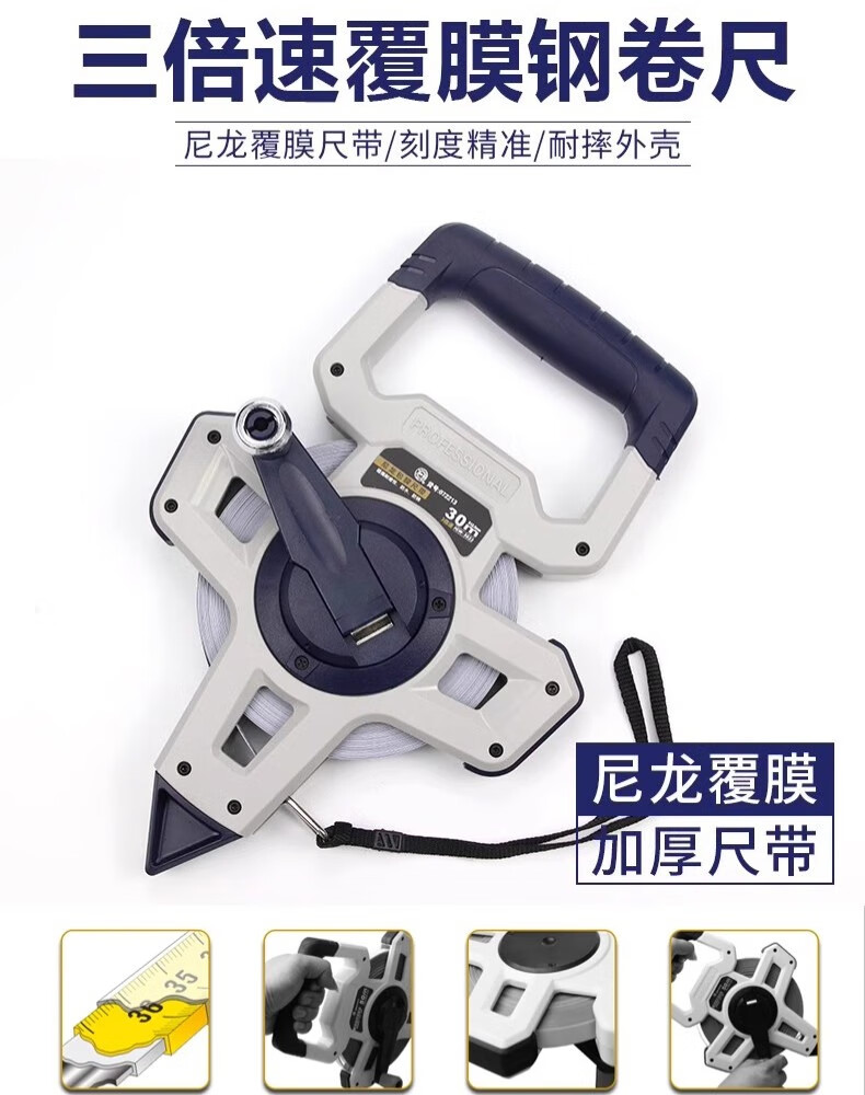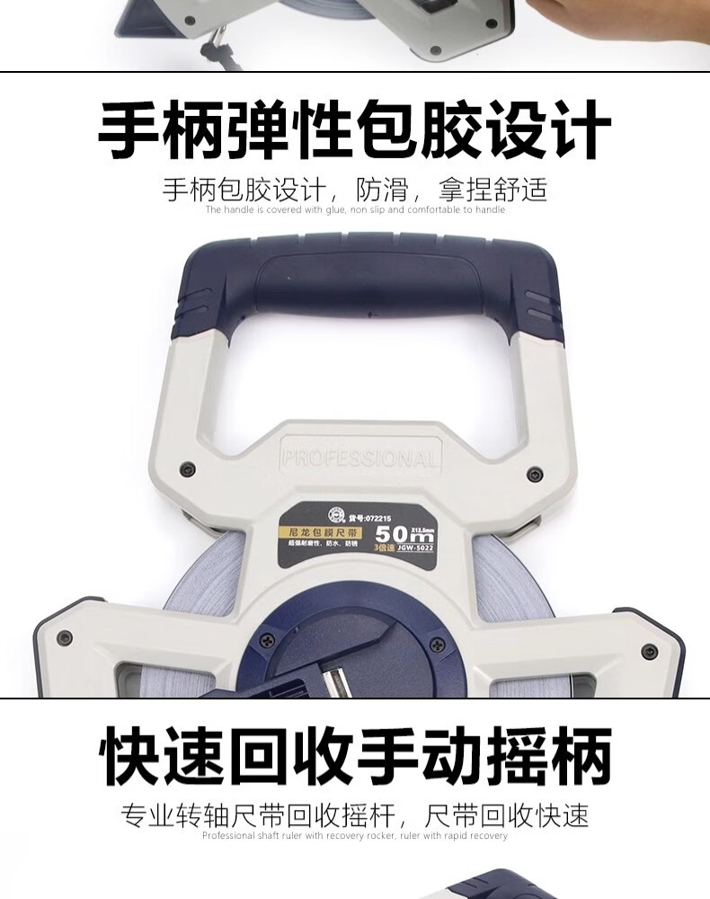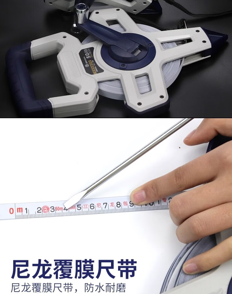 Great Wall steel tape measure nylon-coated long tape measure three-speed high-precision waterproof and wear-resistant shelf ruler 50 meters 072215
