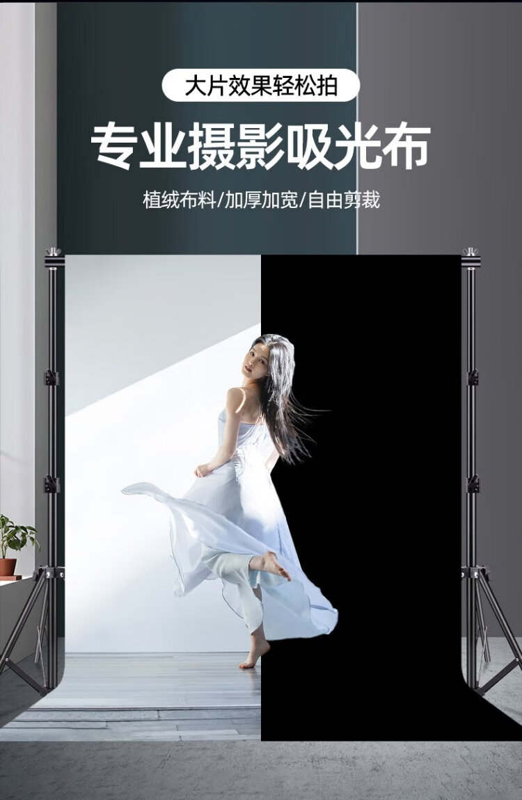 Leitz 1.5*1 meter black flocking cloth live broadcast background cloth shooting photography solid color thickened light-absorbing cloth flannel product photo curtain cutout cloth portrait photography soft light cloth