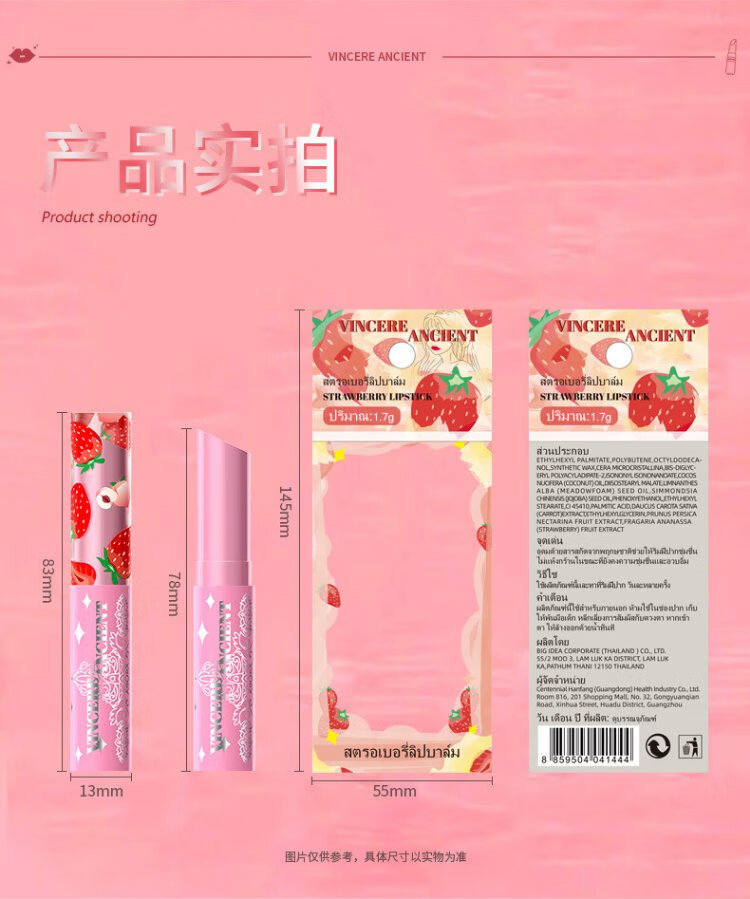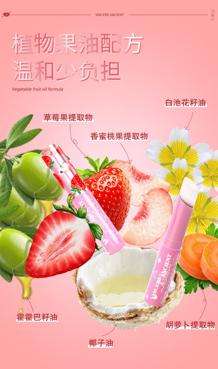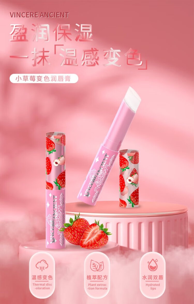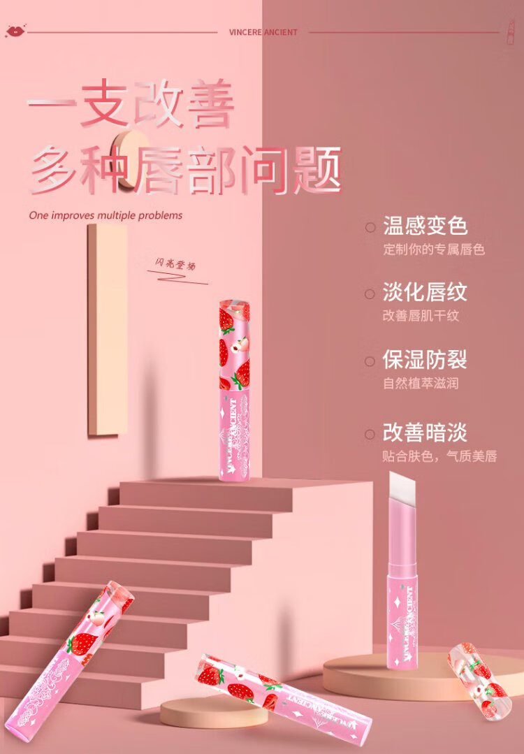 VINCERE ANCIENT imported from Thailand small strawberry color-changing lip balm lip balm chapped lips hydrating mild moisturizing 1.7g