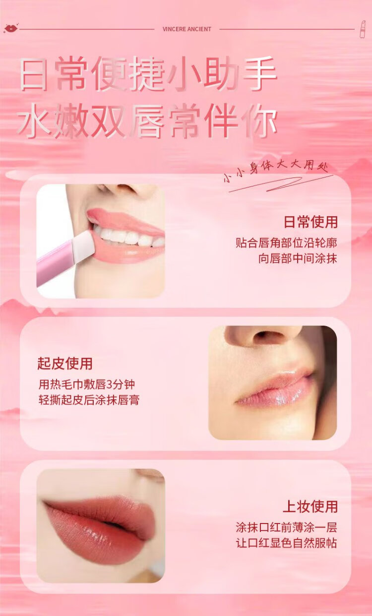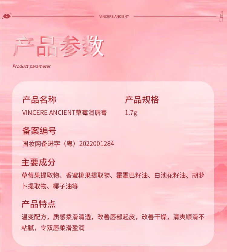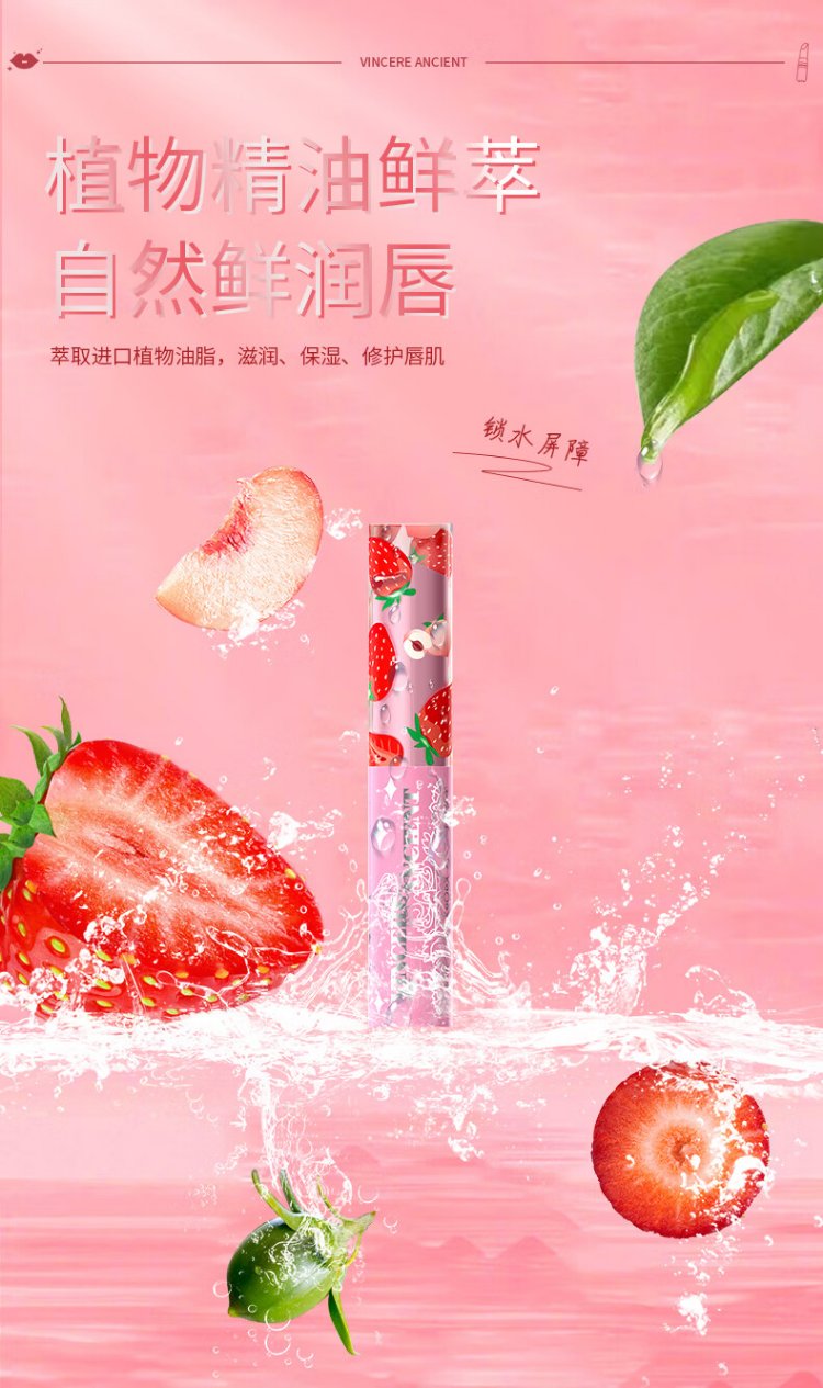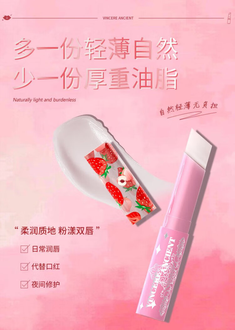 VINCERE ANCIENT imported from Thailand small strawberry color-changing lip balm lip balm chapped lips hydrating mild moisturizing 1.7g