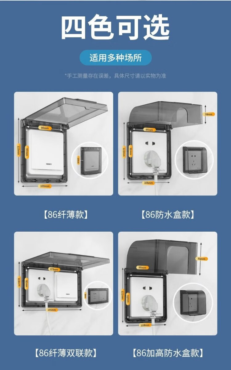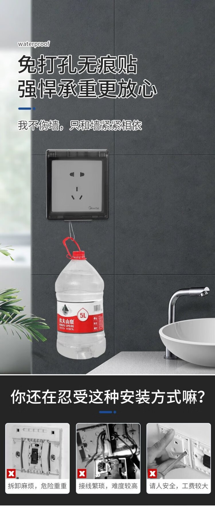 Laurie Type 86 waterproof box bathroom heater switch panel waterproof cover protective cover self-adhesive socket splash box kitchen oil-proof cover 1 pack* switch type ultra-thin white waterproof upgrade