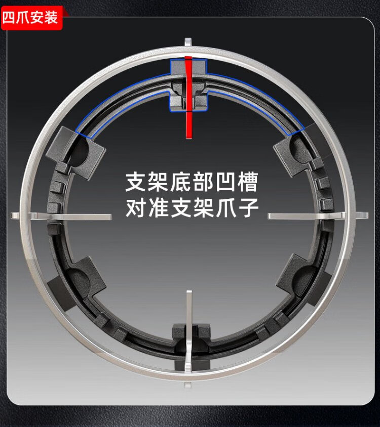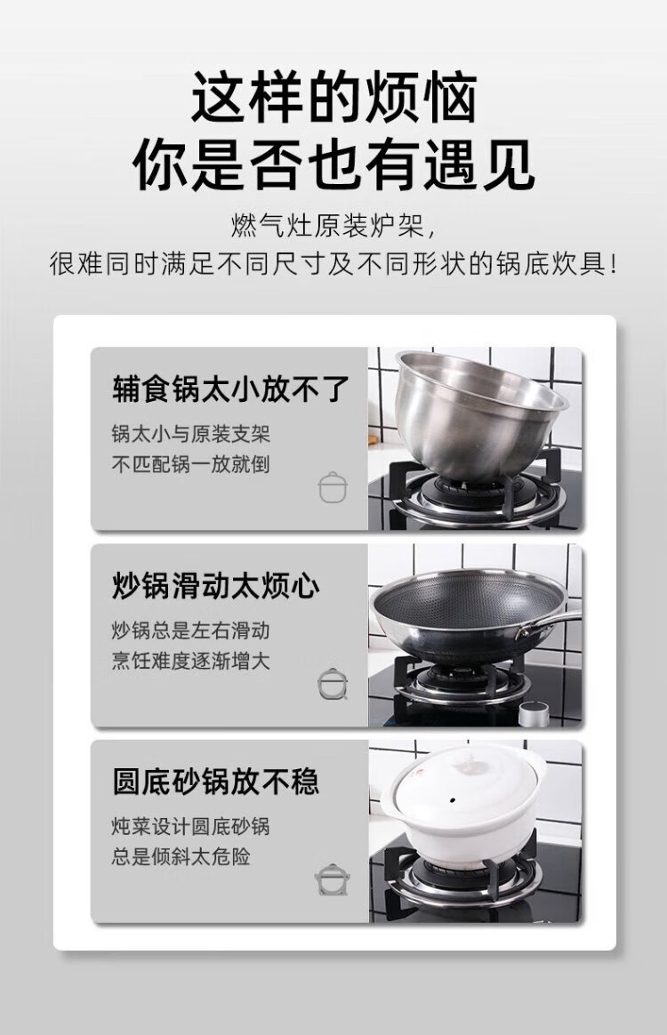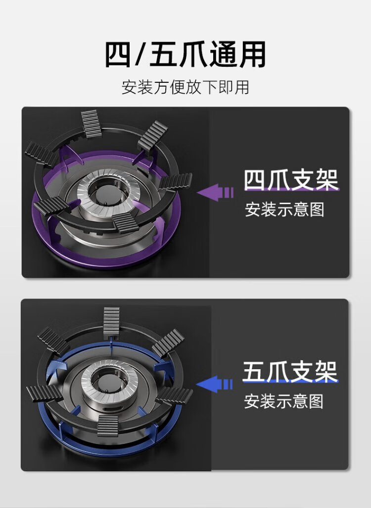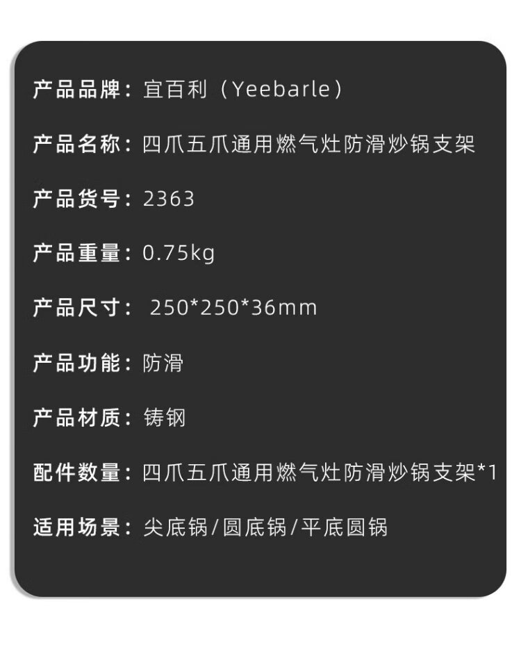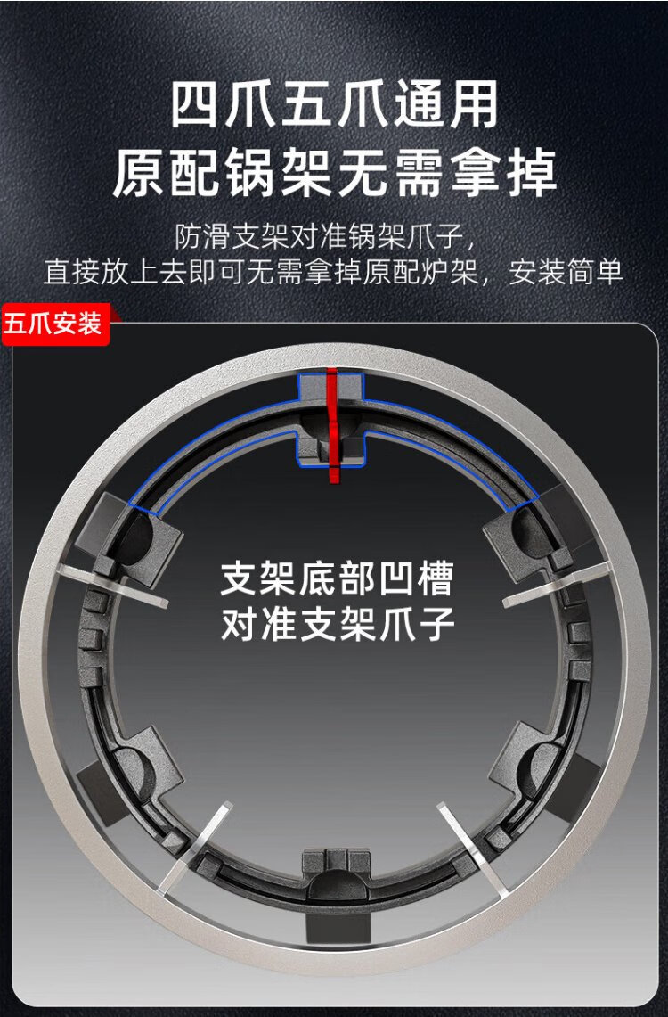 Yibaili gas stove bracket thickened cast steel gas stove bracket stove stand support anti-slip pot shelf kitchen four-claw five-claw universal stove bracket accessories cooking bracket 2363S