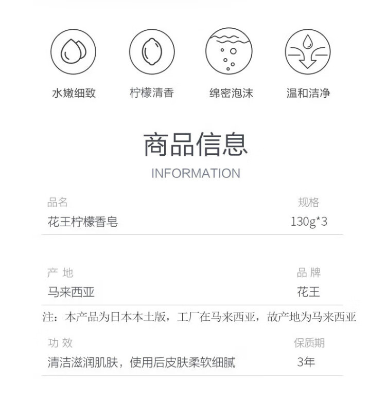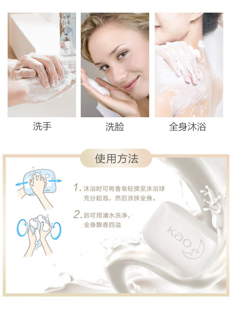 Kao (KAO) imported soap 130g*3 bath soap hand washing face soap children's foam soap lemon scent