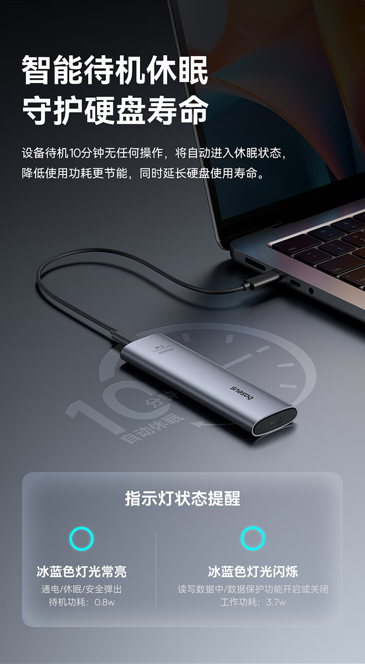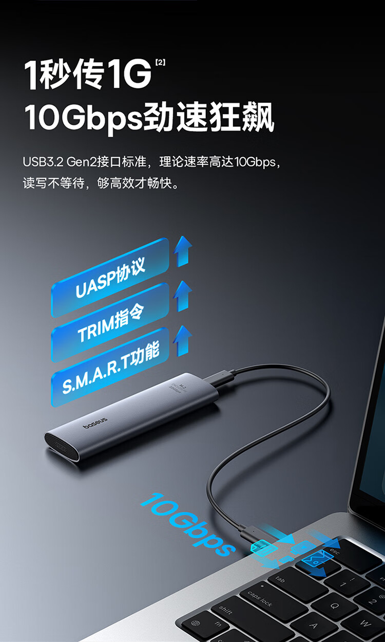 Baseus M.2 10 Gbit/s Einzelprotokoll-Box für mobile Solid-State-Laufwerke Typ C/USB 3.2, geeignet für Laptops, Apple 15 externe SSD-Festplattenbox